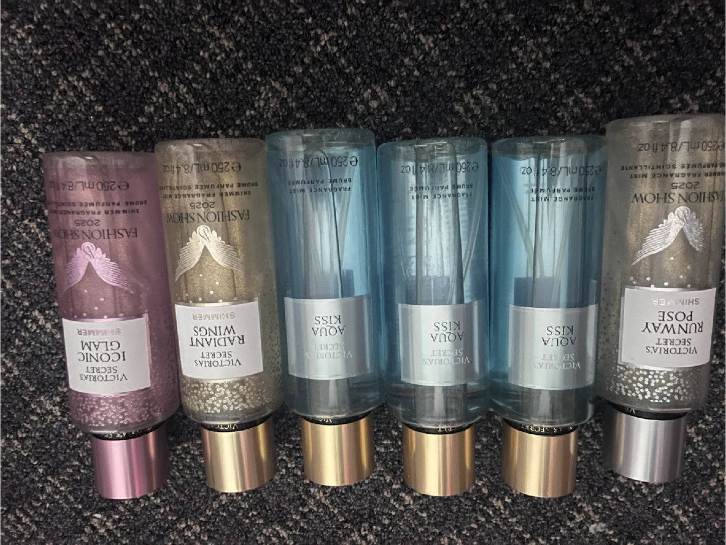 Selling a few Victoria's Secret body mists. Each bottle contains 250mL. The scents available are: - Iconic Glam - Radiant Wings - Aqua Kiss - Runway Pose
