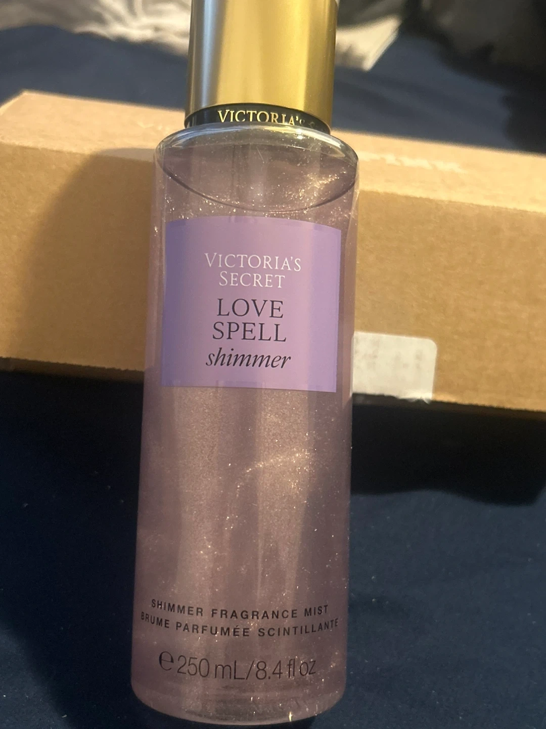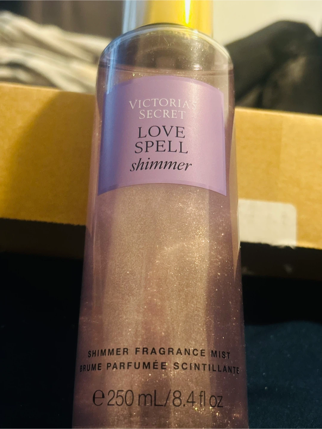68Selling a bottle of Victoria's Secret Love Spell Shimmer fragrance mist! It's a shimmer fragrance mist with 250 mL / 8.4 fl oz. Perfect for adding a little sparkle to your day