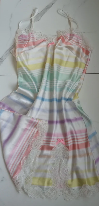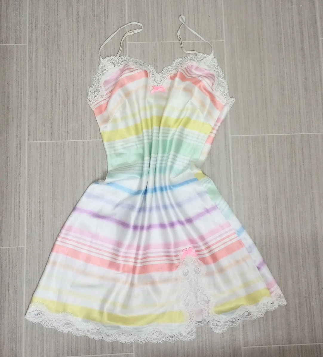 71NWOT - new without tags A super cute Victoria's Secret slip dress! It's a size S/P and featuring a lovely pastel striped pattern with delicate lace trim. dress up or down ; wear inside or night out, even pair with jeans. Perfect for lounging or as a light nightgown!