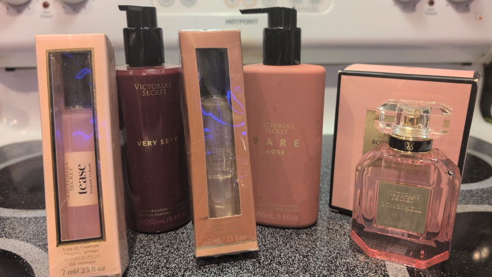 Selling a bundle of Victoria's Secret goodies! Included are: - Tease Sugar Fleur Eau de Parfum Travel Spray (7ml/.23 fl oz) - Very Sexy Fragrance Lotion (250ml/8.4 fl oz) - Bare Rose Fragrance Lotion (250ml/8.4 fl oz) - Bombshell Eau de Parfum
