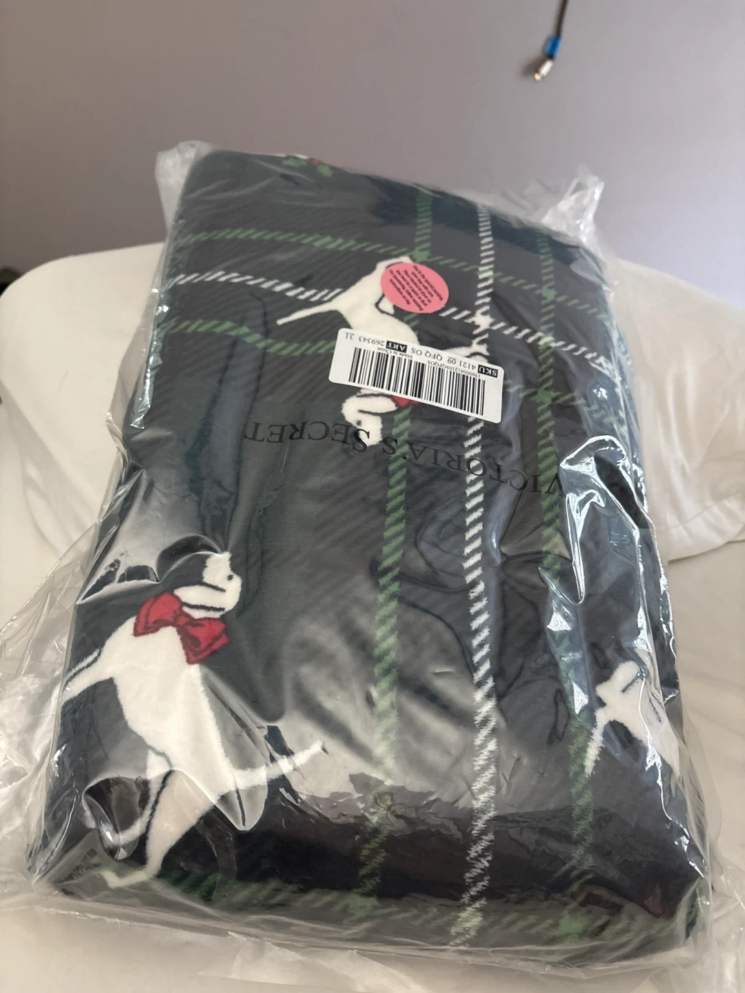 15Selling a brand new Victoria's Secret blanket, still in its original packaging! It features a cute plaid design with dogs. Perfect for cozying up on the couch or adding a touch of whimsy to your bedroom decor