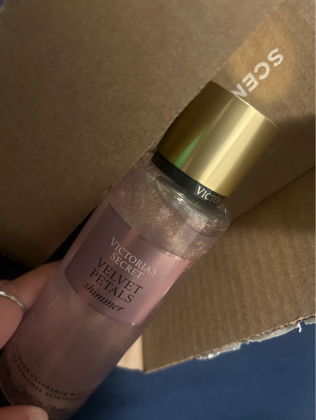 Selling a Victoria's Secret Velvet Petals shimmer fragrance mist. It's a light and shimmery body spray that adds a touch of sparkle to your skin. Perfect for everyday wear or a special occasion! Brand-new