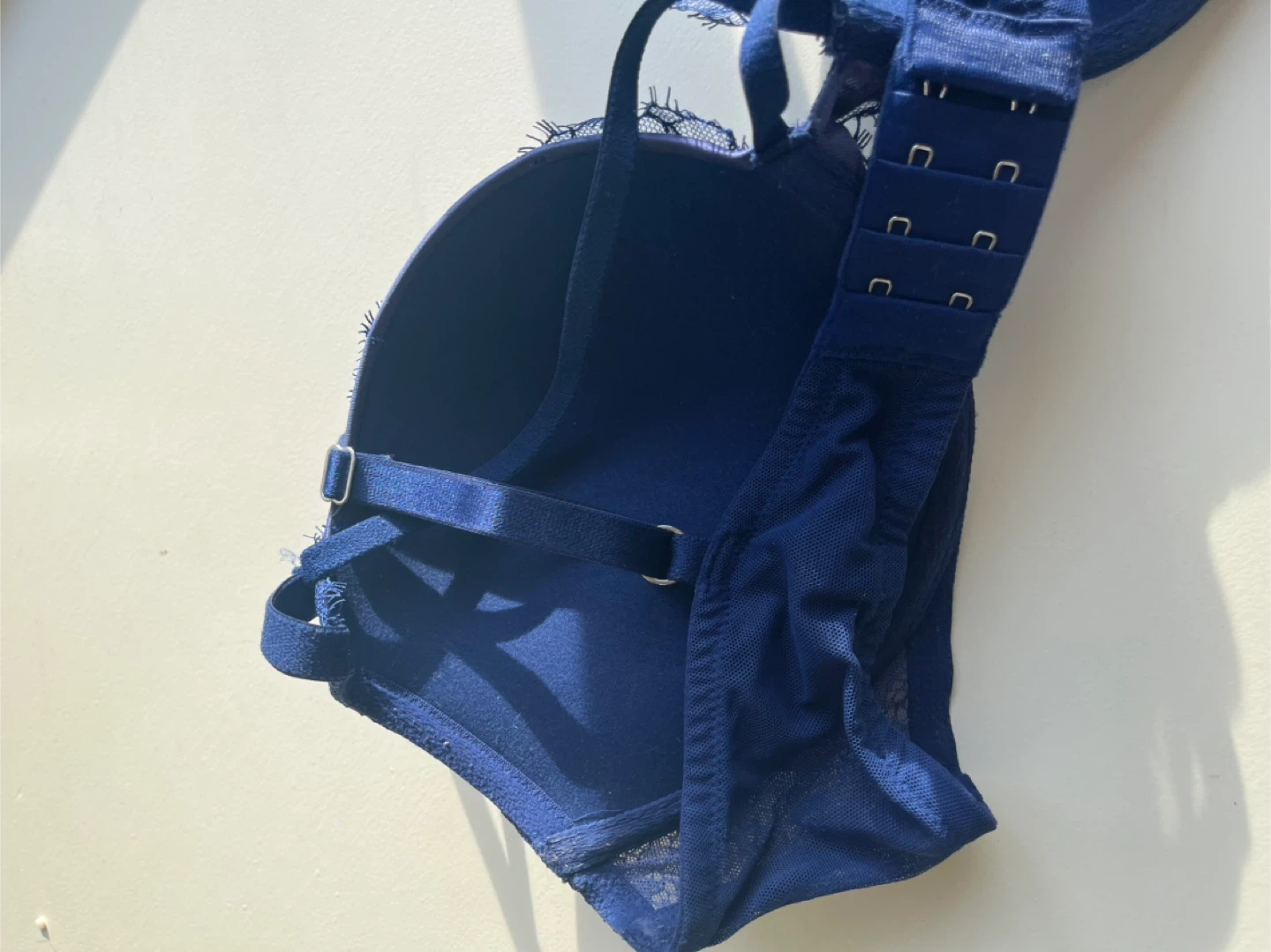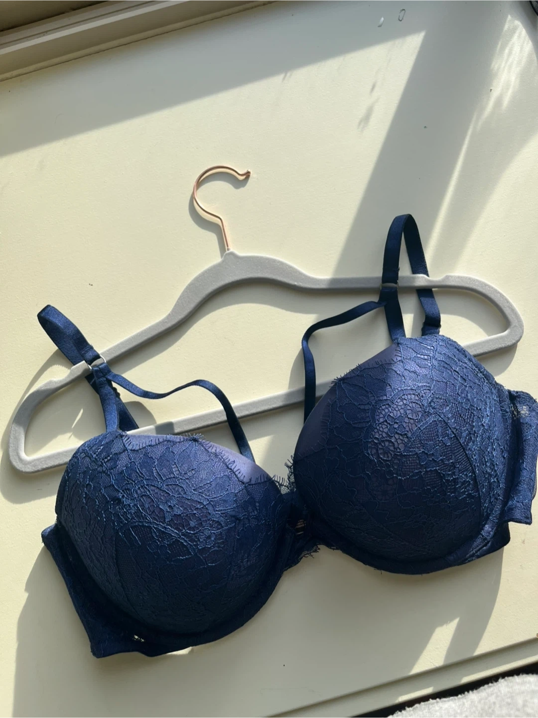 28Victoria's Secret Very Sexy Push-Up Bra in size 36D. It's a beautiful navy blue with lace detailing. Barely worn. Wrong size for me.