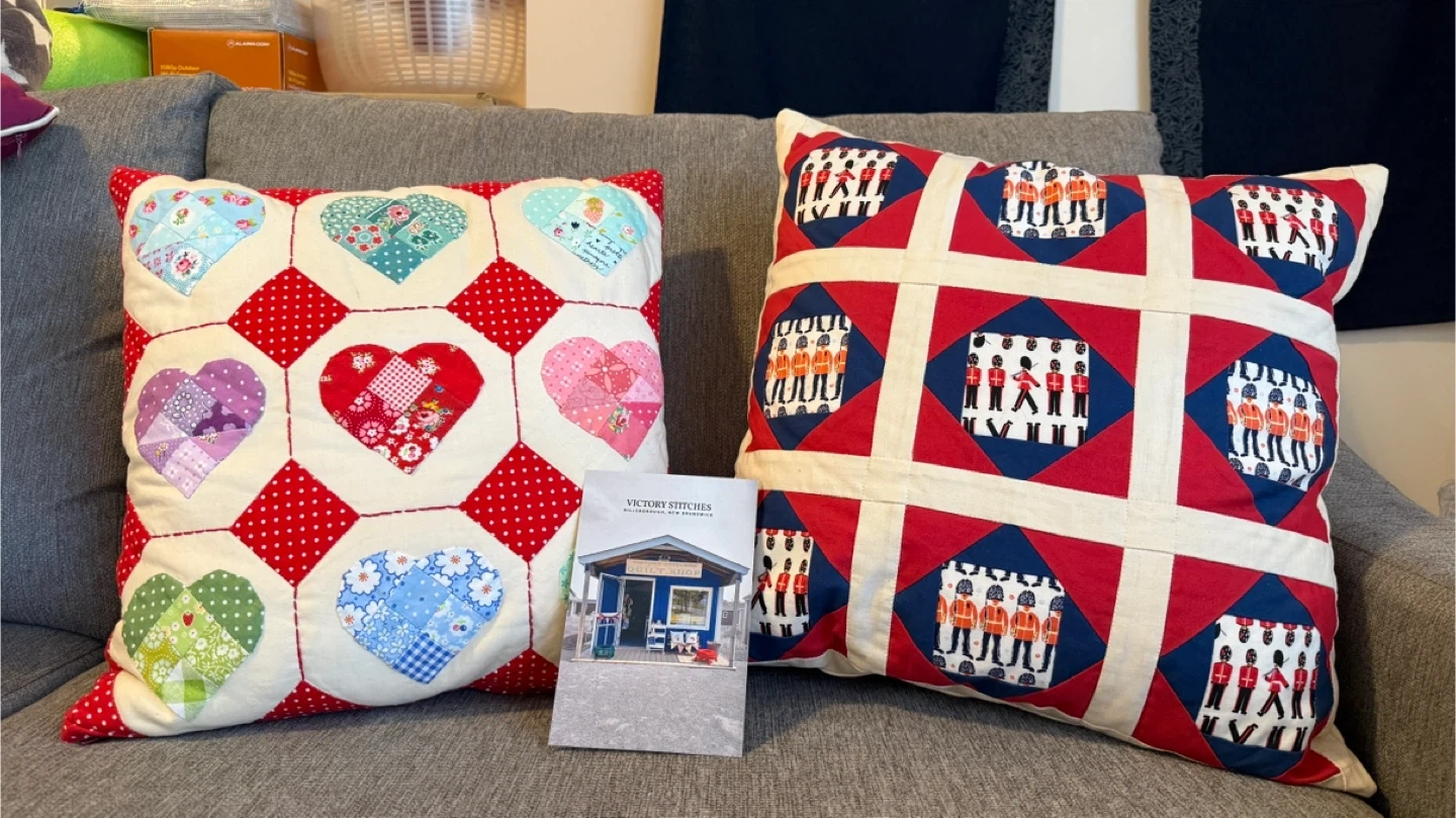 Two decorative pillows from Victory Stitches from the far east coast! One features a heart pattern, and the other has a Canadian guard pattern. Add a touch of charm to your home with these unique, handcrafted pillows. Dimensions: 15 inches PLEASE NOTE: Pickup in Tuscany area. Cash preferred. E-transfer to hold. Please send me a message with date/time to pickup.