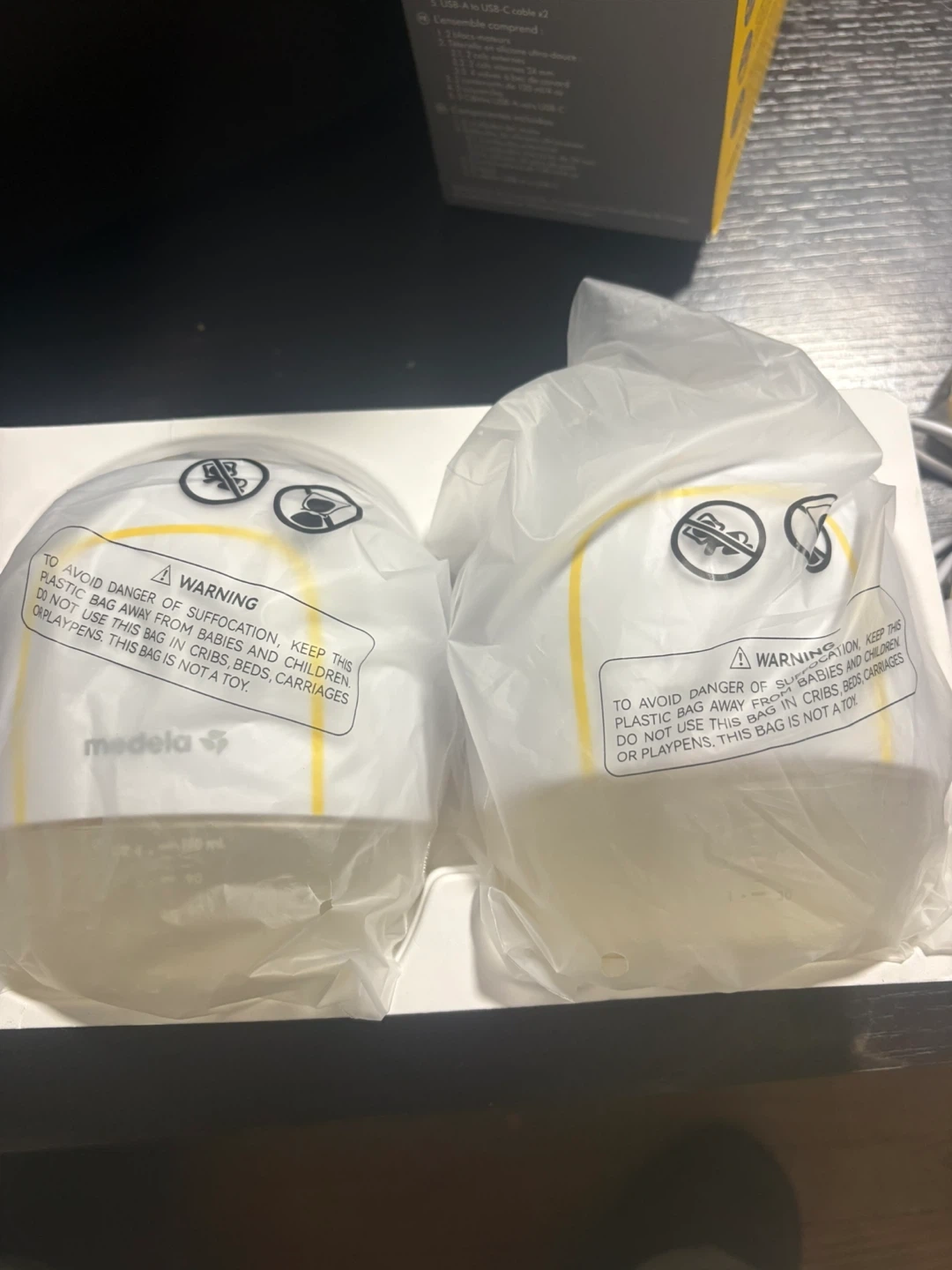 This is a Medela Melody Insa wearable breast pump. It features a slim design for comfort and ease of use. The pump is designed for efficient milk extraction and storage.