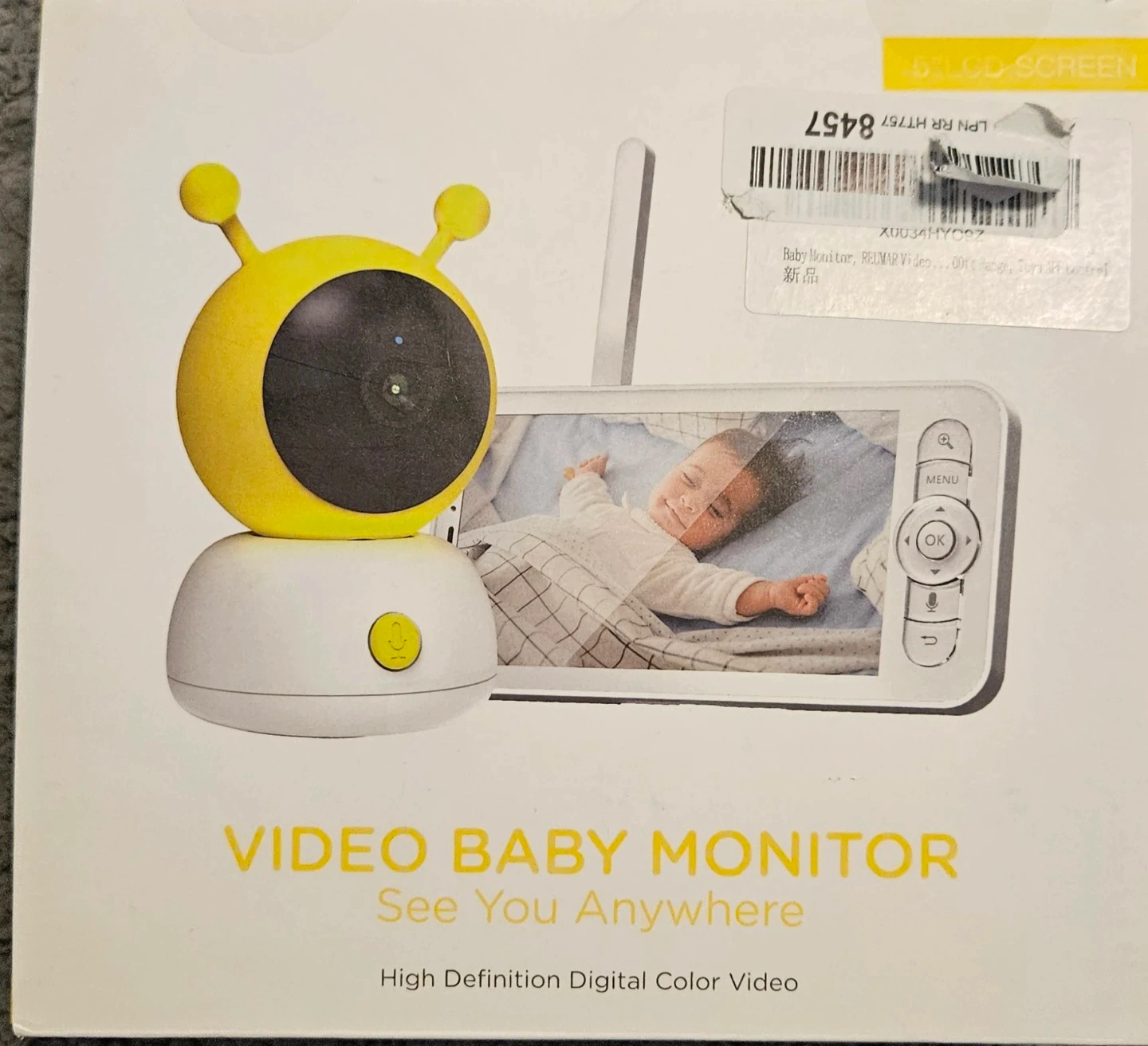 131NIB video baby monitor! It comes with the original box and all components are included. The monitor is a high definition digital colour video monitor so you can see your baby clearly from anywhere in the house -5" LCD Screen -HD 720P Display -Two-Way Audio Video -Support Micro SD Card (max 128 GB) Storage (SD not included) -Foldable Bracket -Foldable Antenna -Sound Alarm -Screenshot & Recording -Battery Capacity 3000mAh -2x & 4x Image Zooming -Nursing Reminder -Sleeping Mode Available -Adjustable Screen Brightness -Adjustable Volume Control -Support Multiple Languages -Wallpaper -New, Open Box