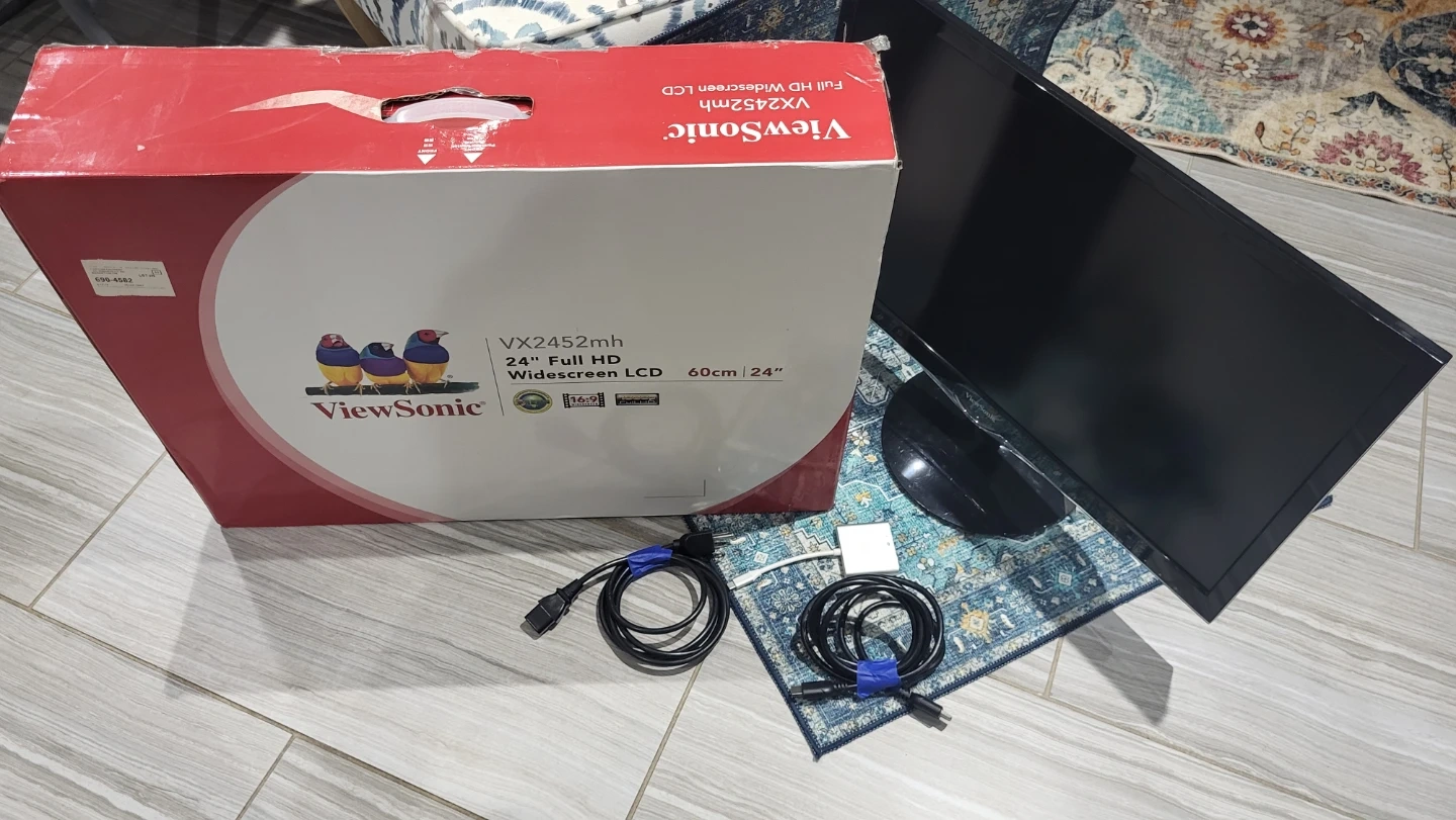 65Selling a ViewSonic VX2452mh 24" Full HD Widescreen LCD monitor. It comes with the box, power cord, hdmi cable, and USB to C multiport adapter. This monitor has a 60cm/24" screen and provides a great viewing experience for work or play