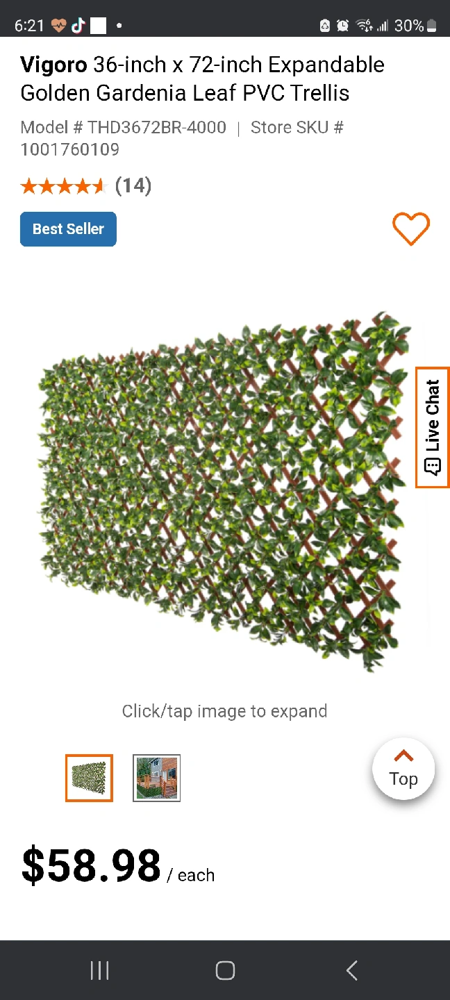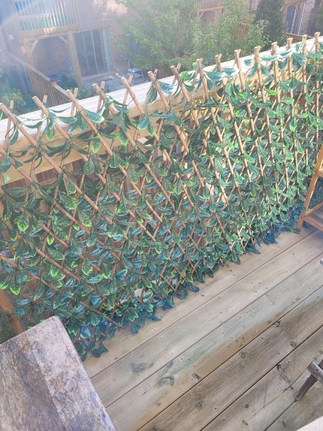 Selling a Vigoro 36-inch x 72-inch Expandable Golden Gardenia Leaf PVC Trellis. It's in great shape and perfect for adding some greenery to your space! Retails for $58.98.