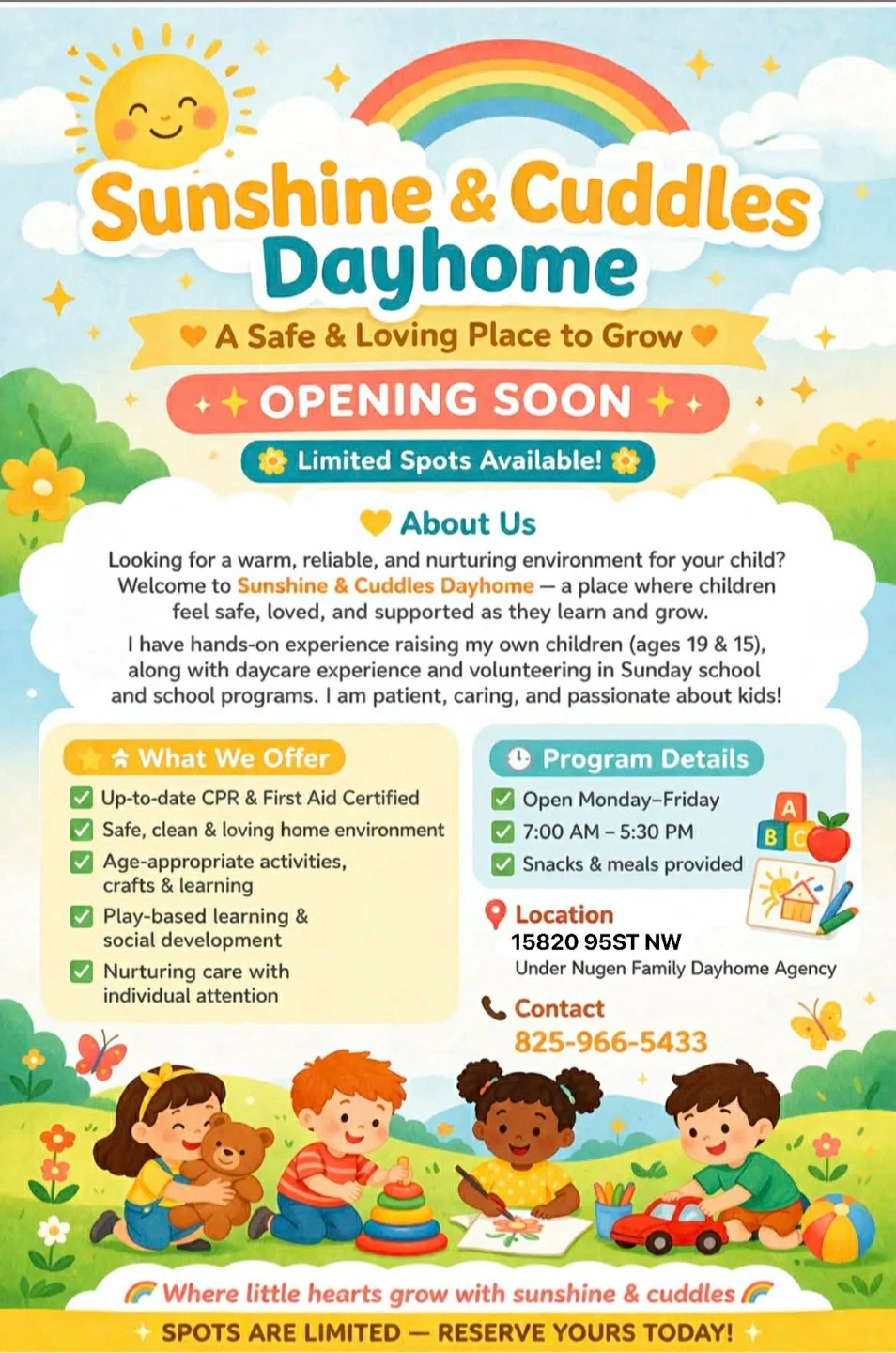 Sunshine & Cuddles Dayhome - Opening on May 11,2026