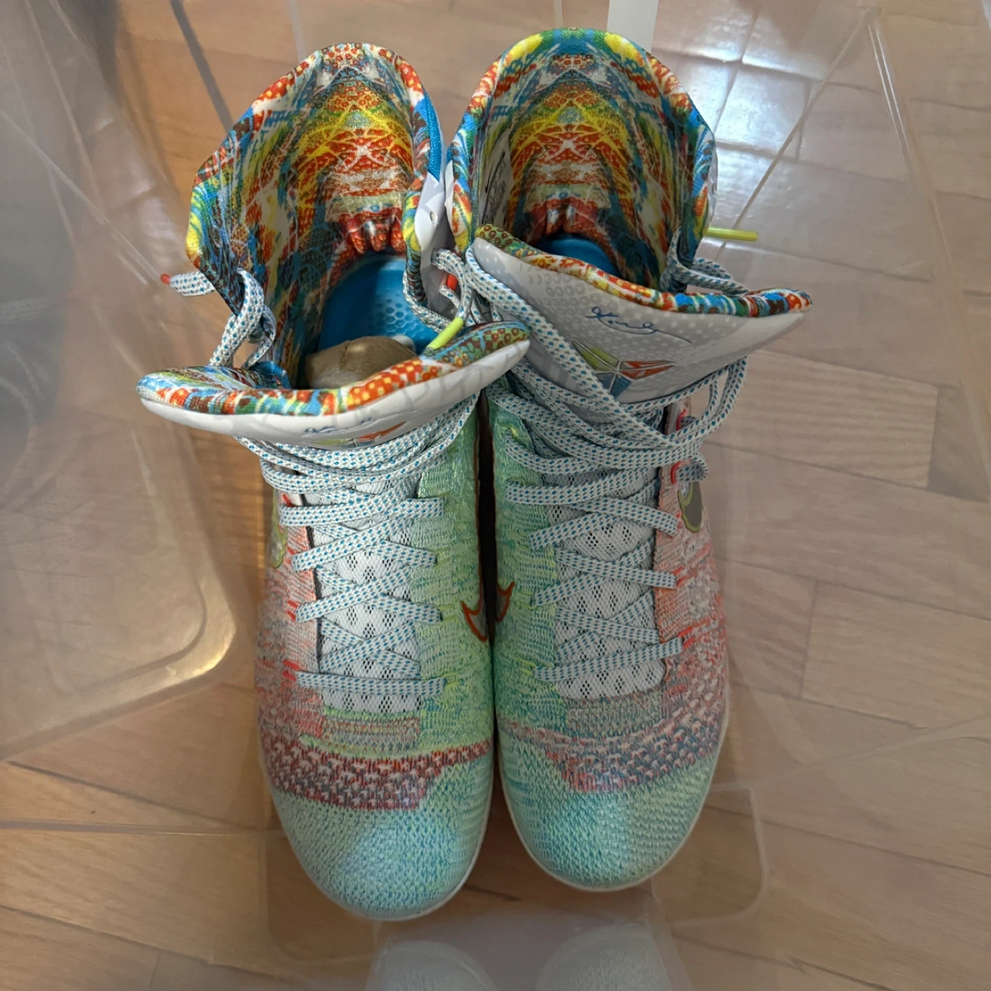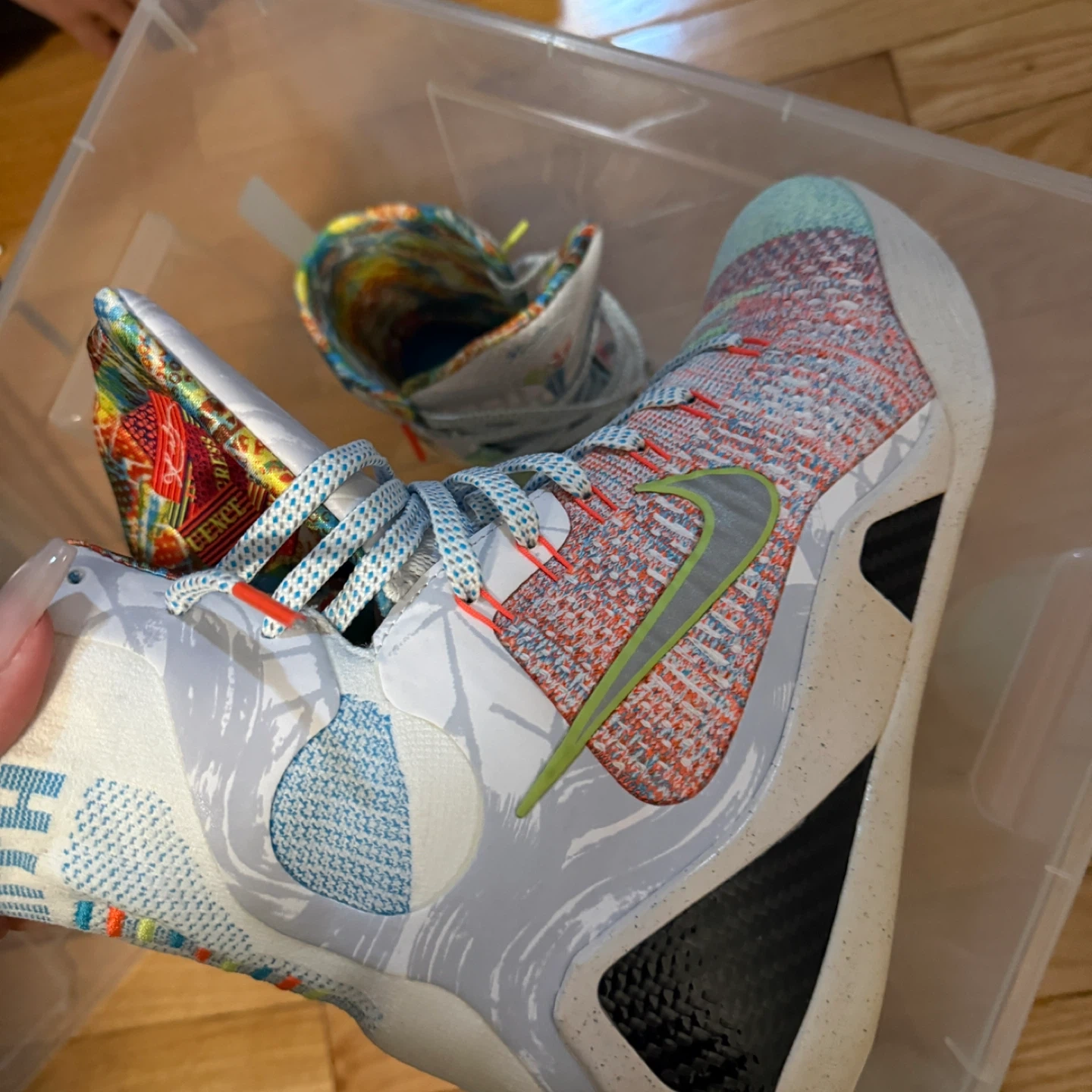 These Nike Kobe 9 Elite basketball shoes feature a Flyknit upper with a dynamic fit system for support and comfort. The vibrant "Masterpiece" colourway is eye-catching! These are a size 9.