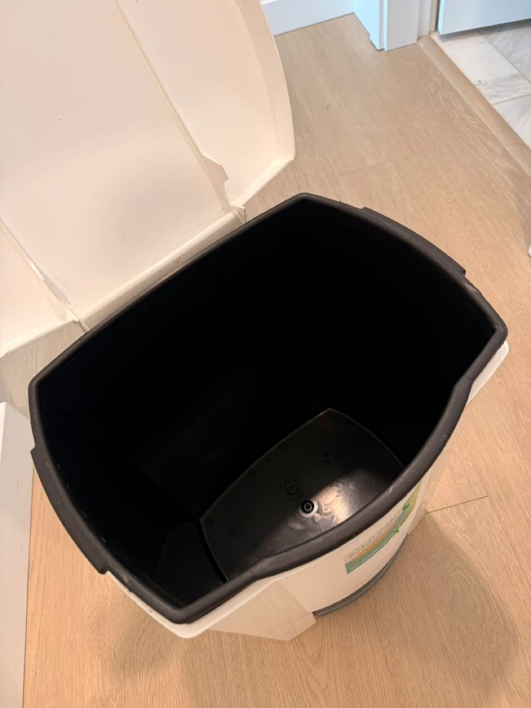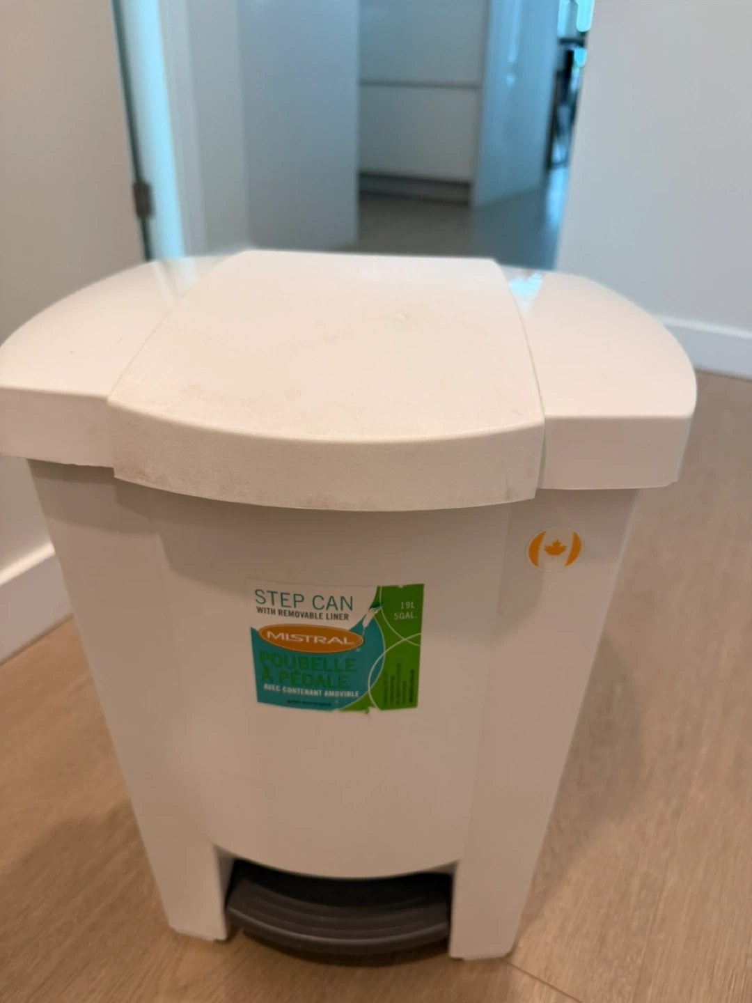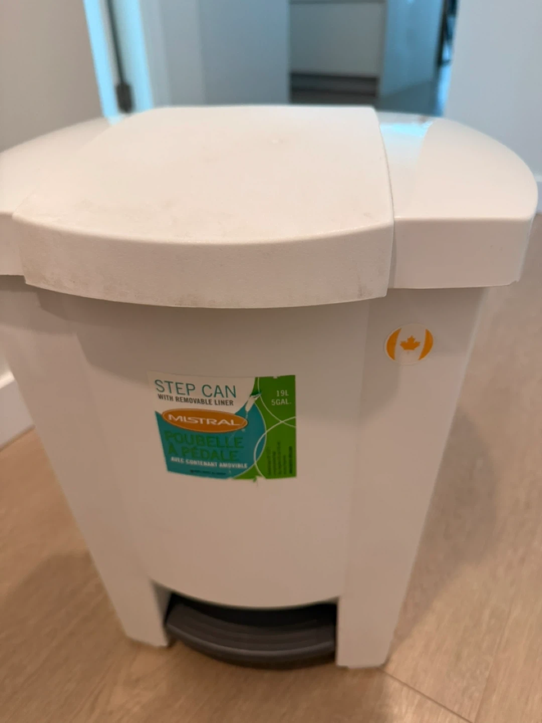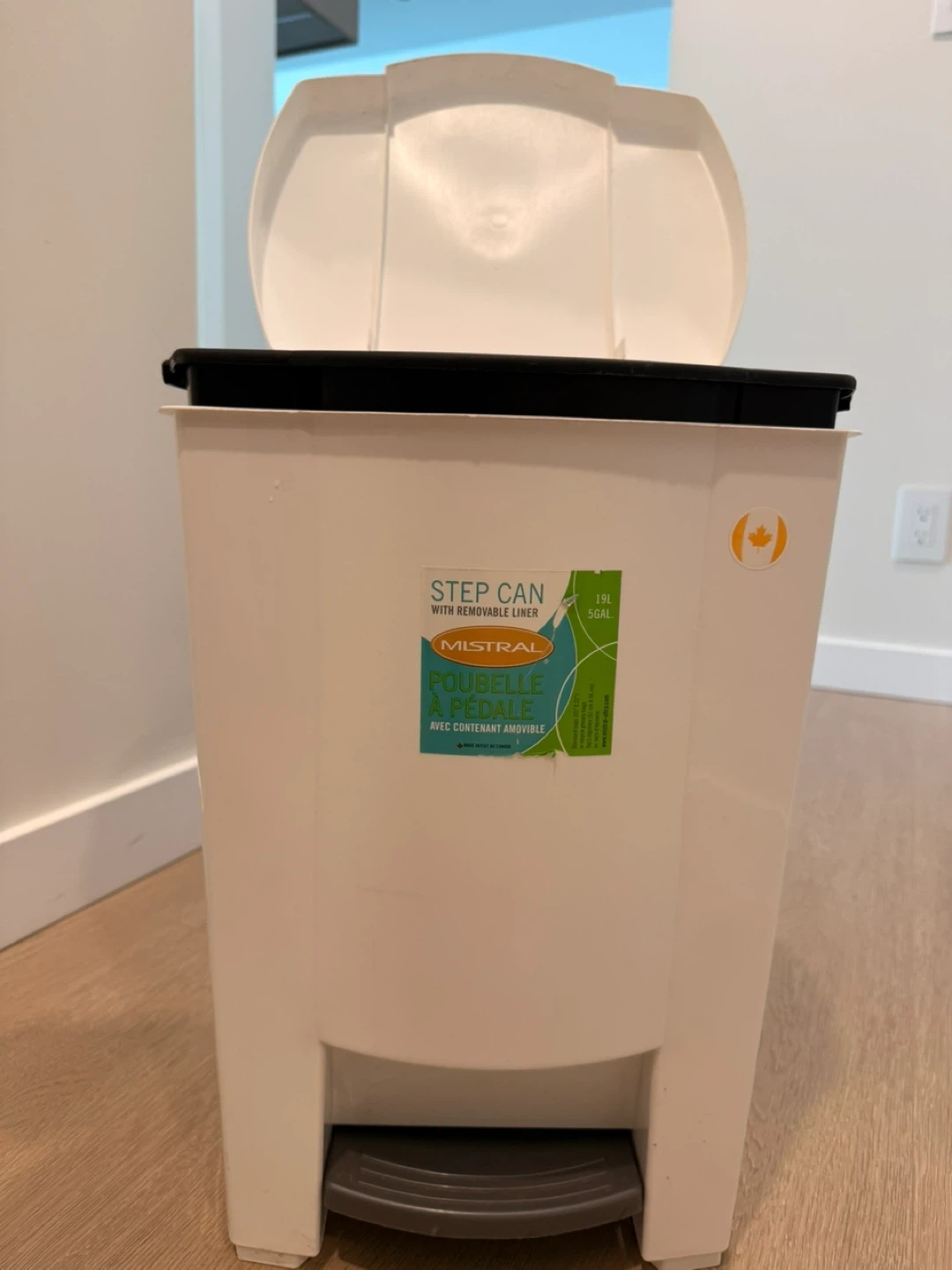 This Mistral step can features a removable liner for easy cleaning. It's a 19L (5gal) capacity bin with a convenient step pedal. It's designed to hold a garbage bag.