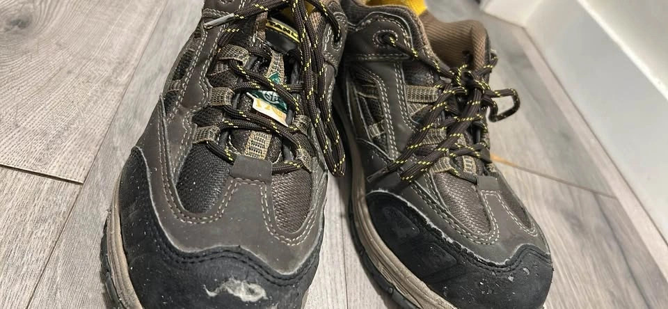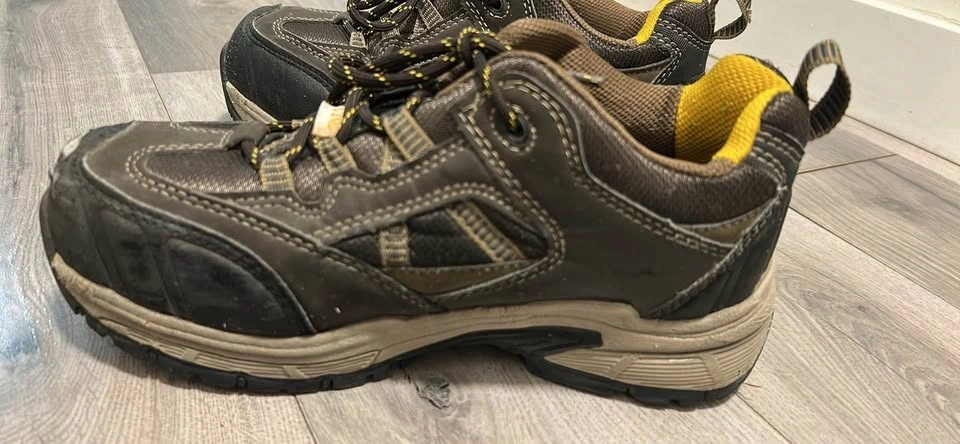 Brown color, best seller shoes bought from Canadian Tire. Just like new, used for 2 months then switched to IT job. One shoe slightly damaged near the toe. Size US 7.