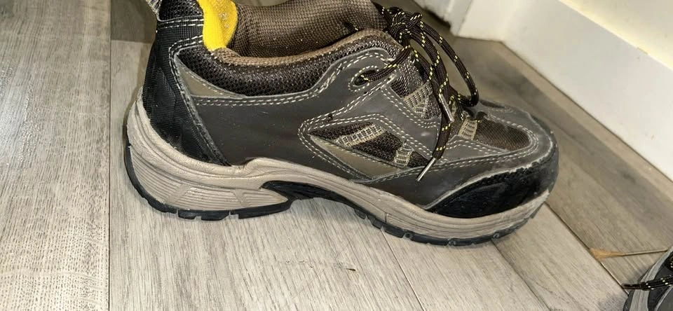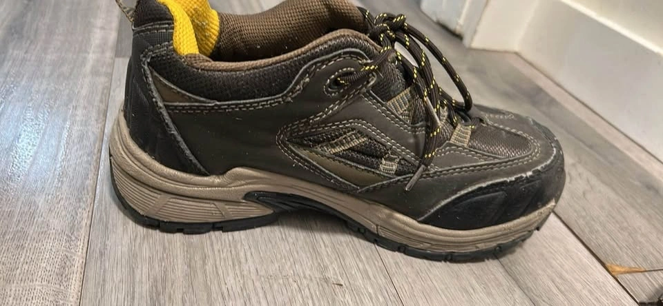 Brown color, best seller shoes bought from Canadian Tire. Just like new, used for 2 months then switched to IT job. One shoe slightly damaged near the toe. Size US 7.