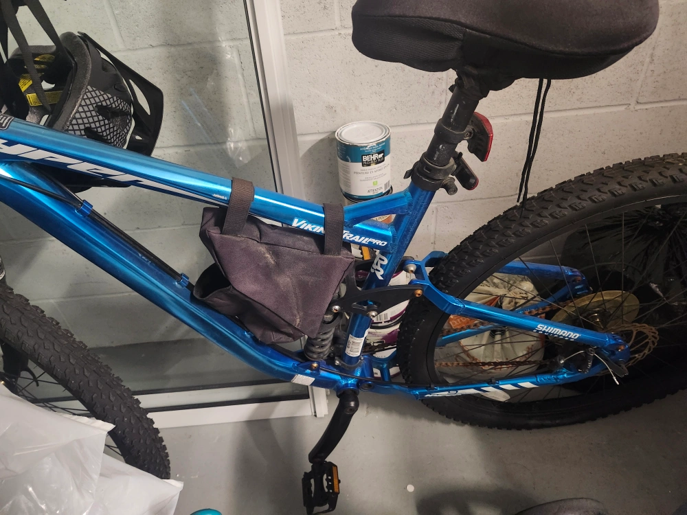 Selling a blue Viking Trail Pro mountain bike. It features Shimano components and a comfortable seat for those long rides around town or on the trails. This bike is ready for adventure!