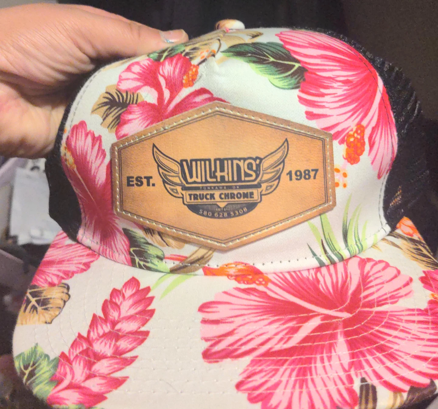 60Villains Truck Chrome floral cap featuring a tropical floral design. The cap has a unique logo patch with the brand name and 'Est. 1987'. Perfect for adding a touch of style to your outfit!