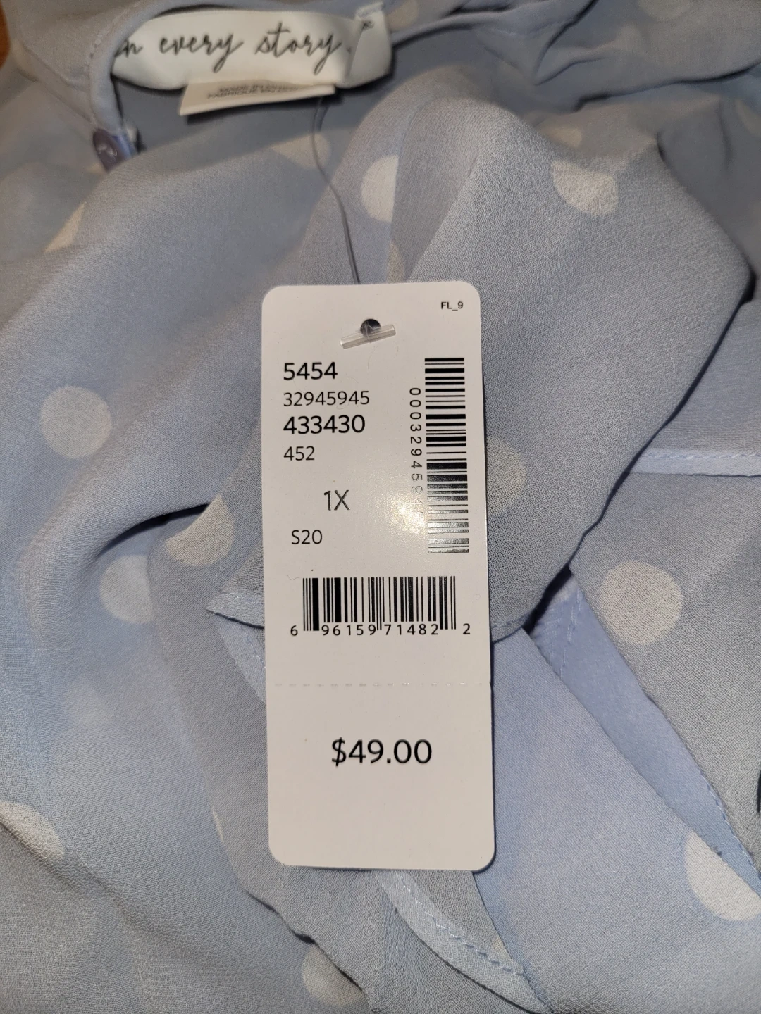 Light Blue Polka Dot Blouse - 1X