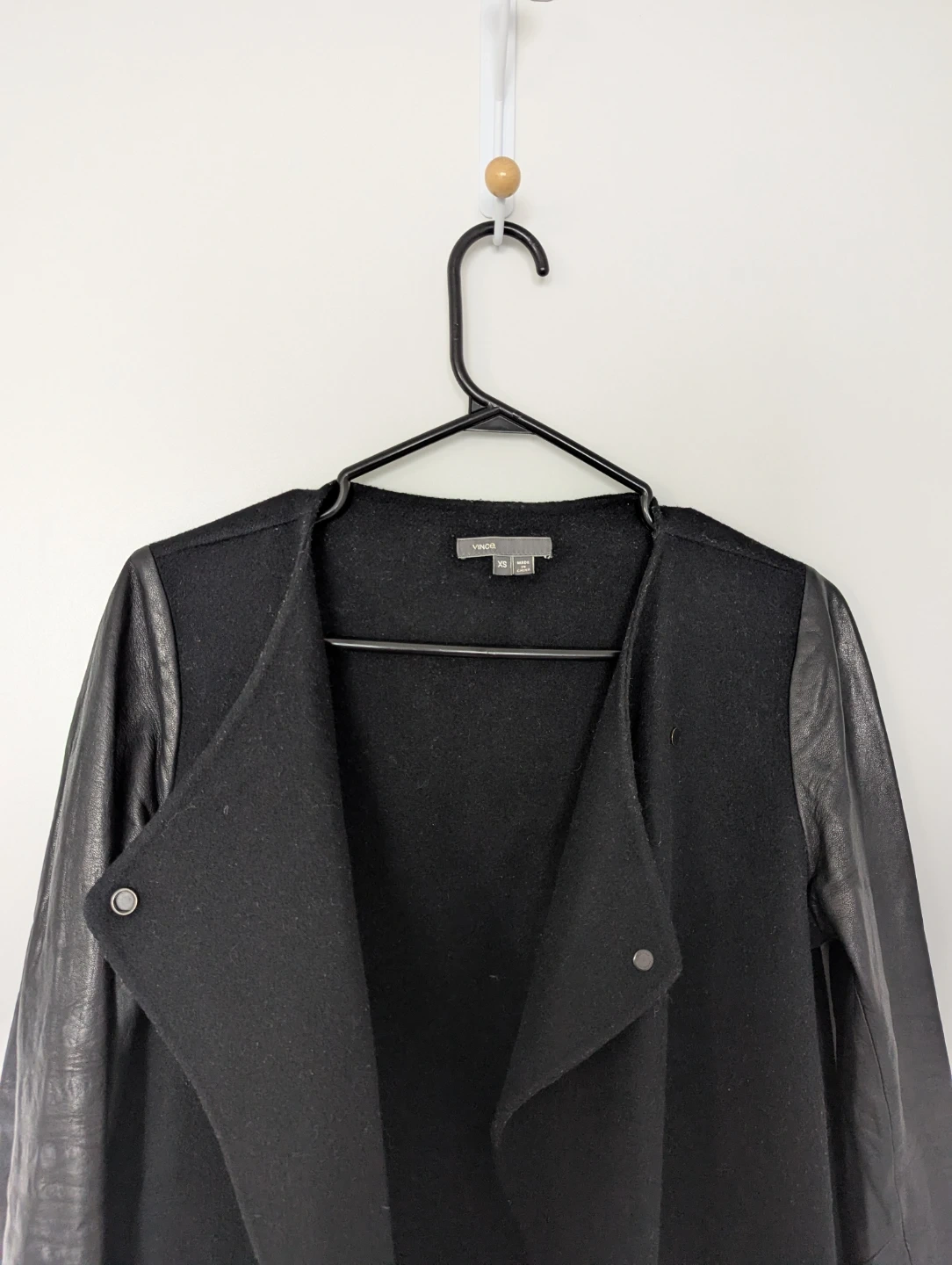 Show allClub Monaco Black Wool Blend Leather Sleeve Coat XS