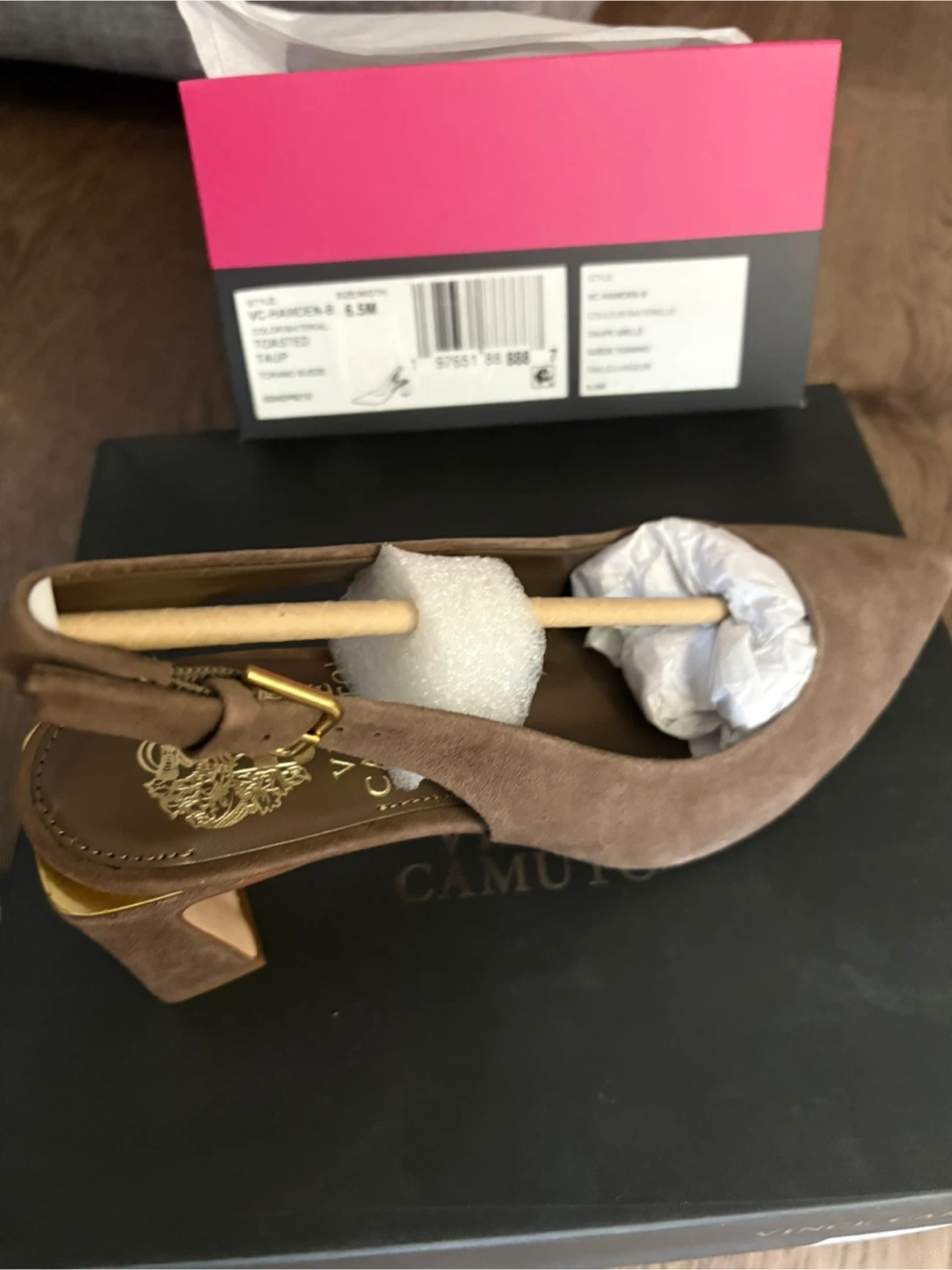68These Vince Camuto Hamden slingback heels are in great condition and come with the original box! They're a beautiful toasted taupe colour and size 6.5M. The material is a soft suede, perfect for dressing up or down. A stylish and versatile addition to any wardrobe! Nepean