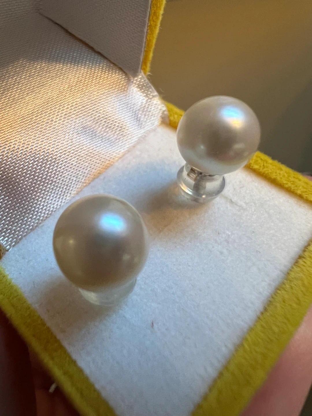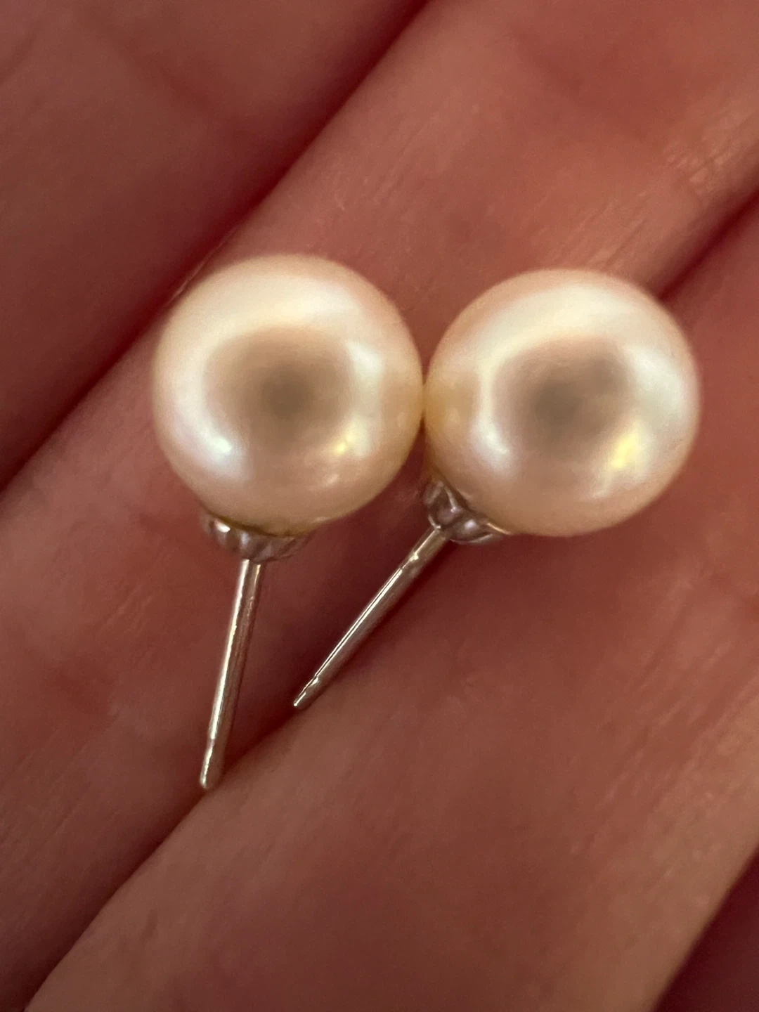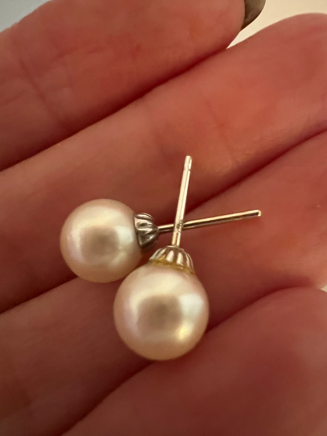 579Timeless !! Genuine pearls 10K white gold posts (they were tested and they were confirmed as 10K gold, no stamp though, vintage jewelry isn’t stamped sometimes) New silicone backing and cute star shape presentation box is included They have been fully sanitized and are in excellent condition Vintage jewelry revival !!! Asking $45 Interested? Message me and please check my other listings…