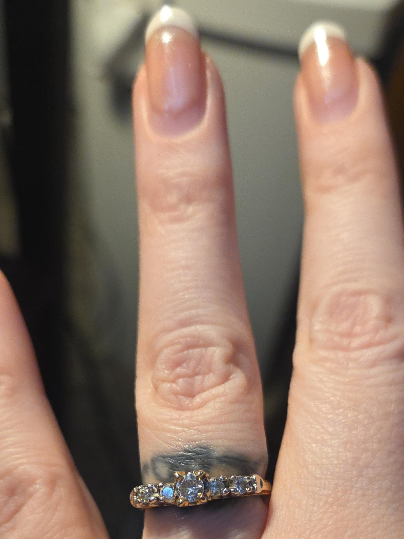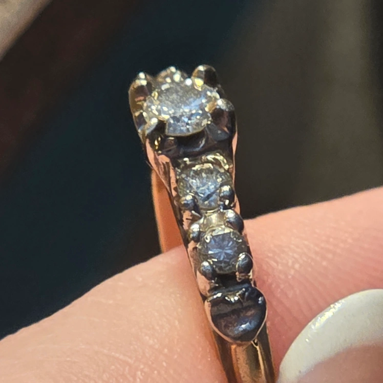 Selling a vintage 14K gold ring with diamond accents. It's a beautiful piece with a classic design. Perfect for adding a touch of elegance to any outfit!