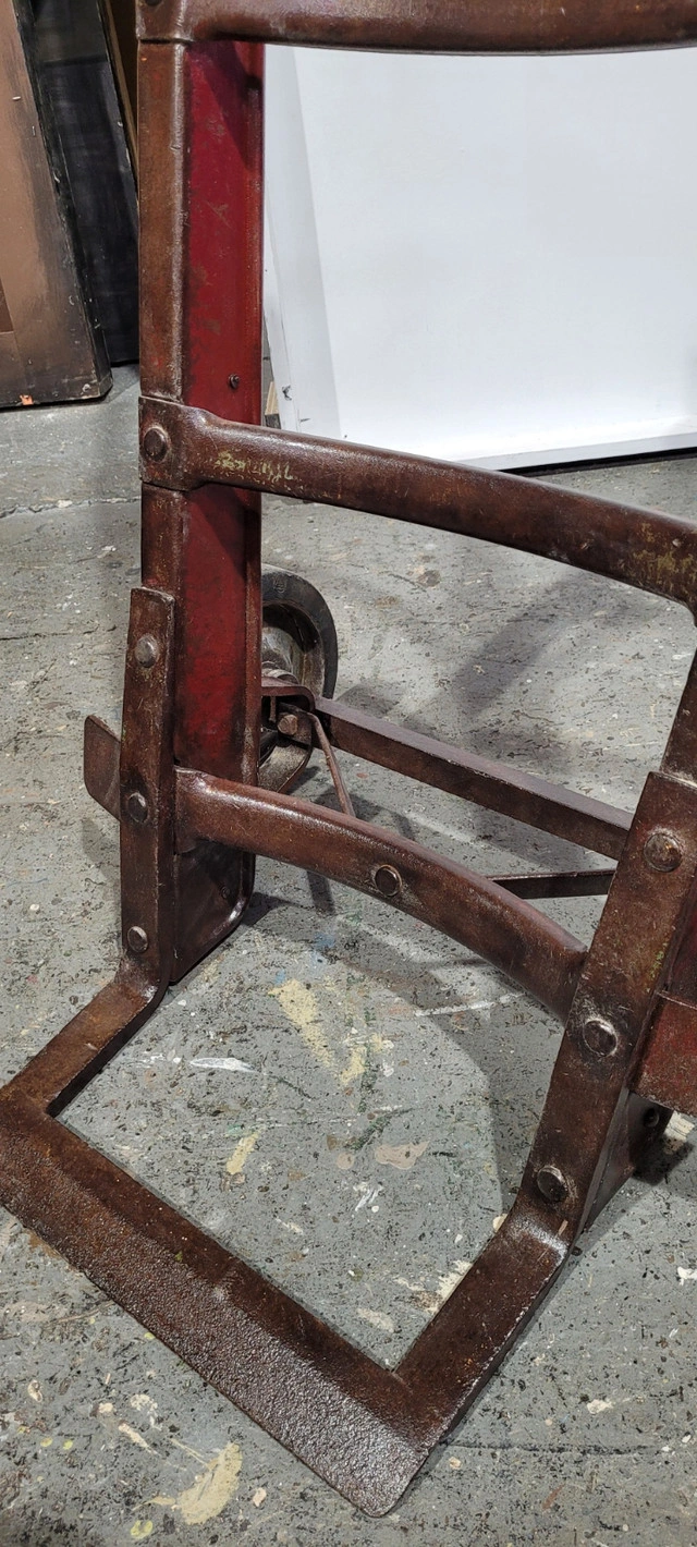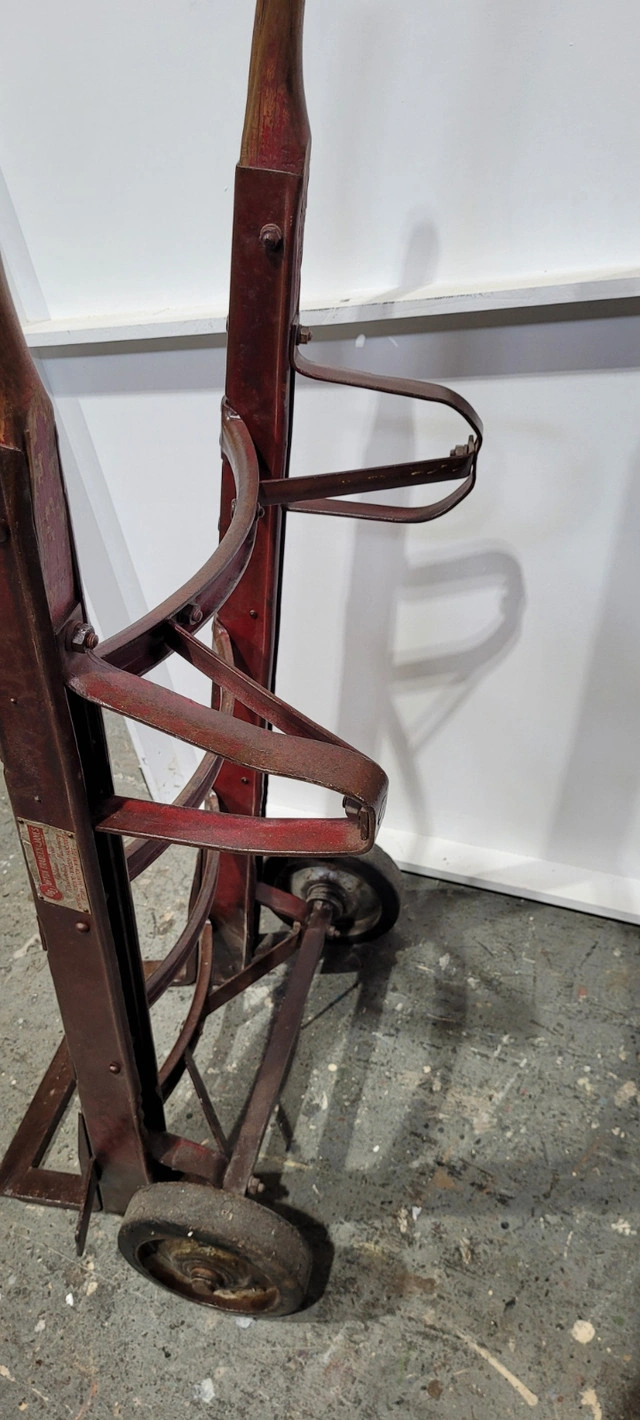 Vintage Antique Barrel Dolly. Early to mid 20th century. Some dings from its past life. Has been completely sanded and clear coated to preserve the wonderful patina. Perfect to make into a coffee table or shelf unit. Canadian made by Upton Braden and James Machine Tools. Asking $200