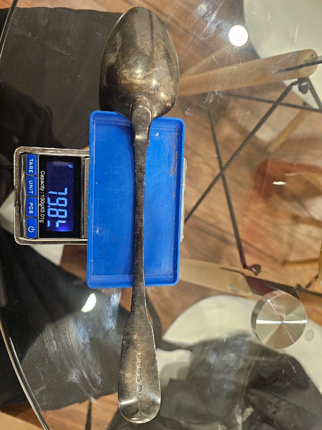 186Selling an antique silver spoon. It has some markings on it. Weighs 79.86 grams. CHECK MY OTHER LISTING TOO