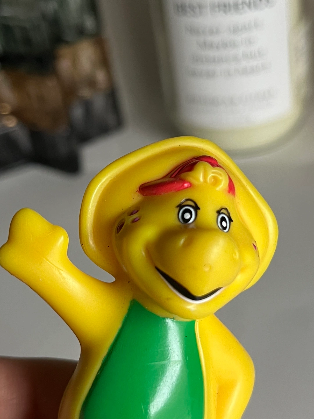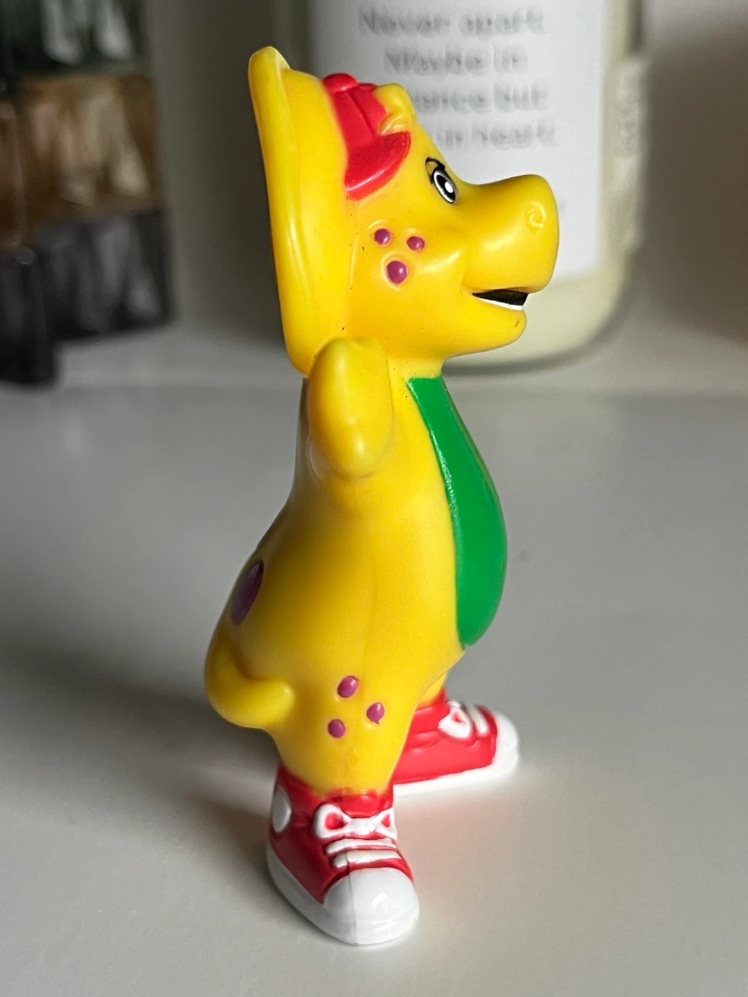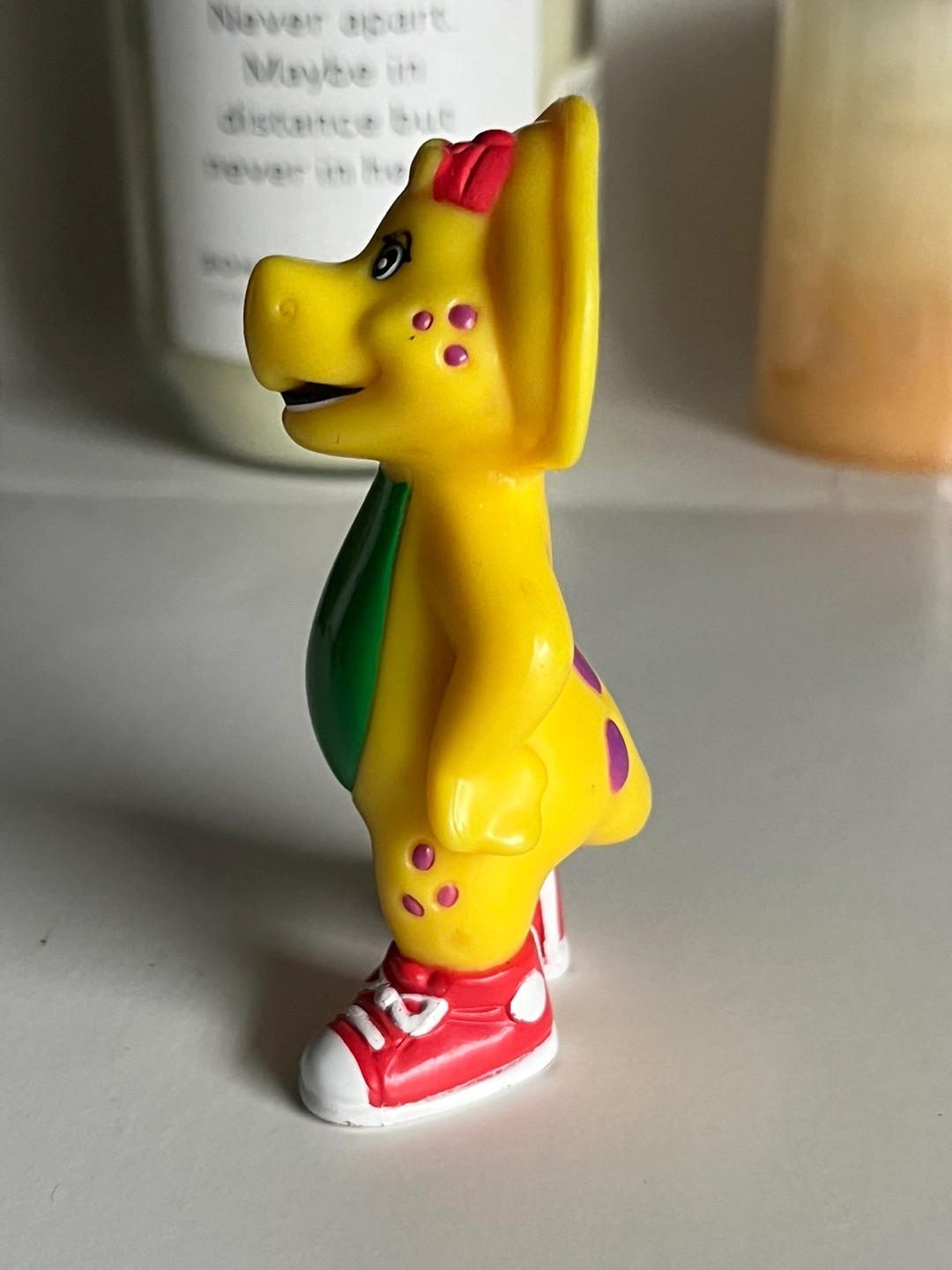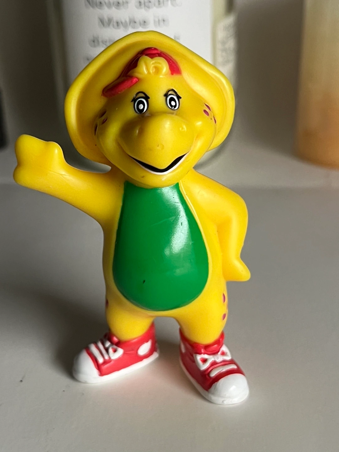 Vintage Barney Dinosaur Figure Baby Bop. Adorable yellow Barney figurine. Red shoes and green shirt. Small collectible toy. Great for kids or collectors. Please check the pictures, what you see is what you get. I’m in Fleetwood near the Community Center. I can ship, cost depends on the location For 2 any items I offer 5% Discount, for 3 items 10% discount and for 10 or more 20% Discount Thank you for check my listings.