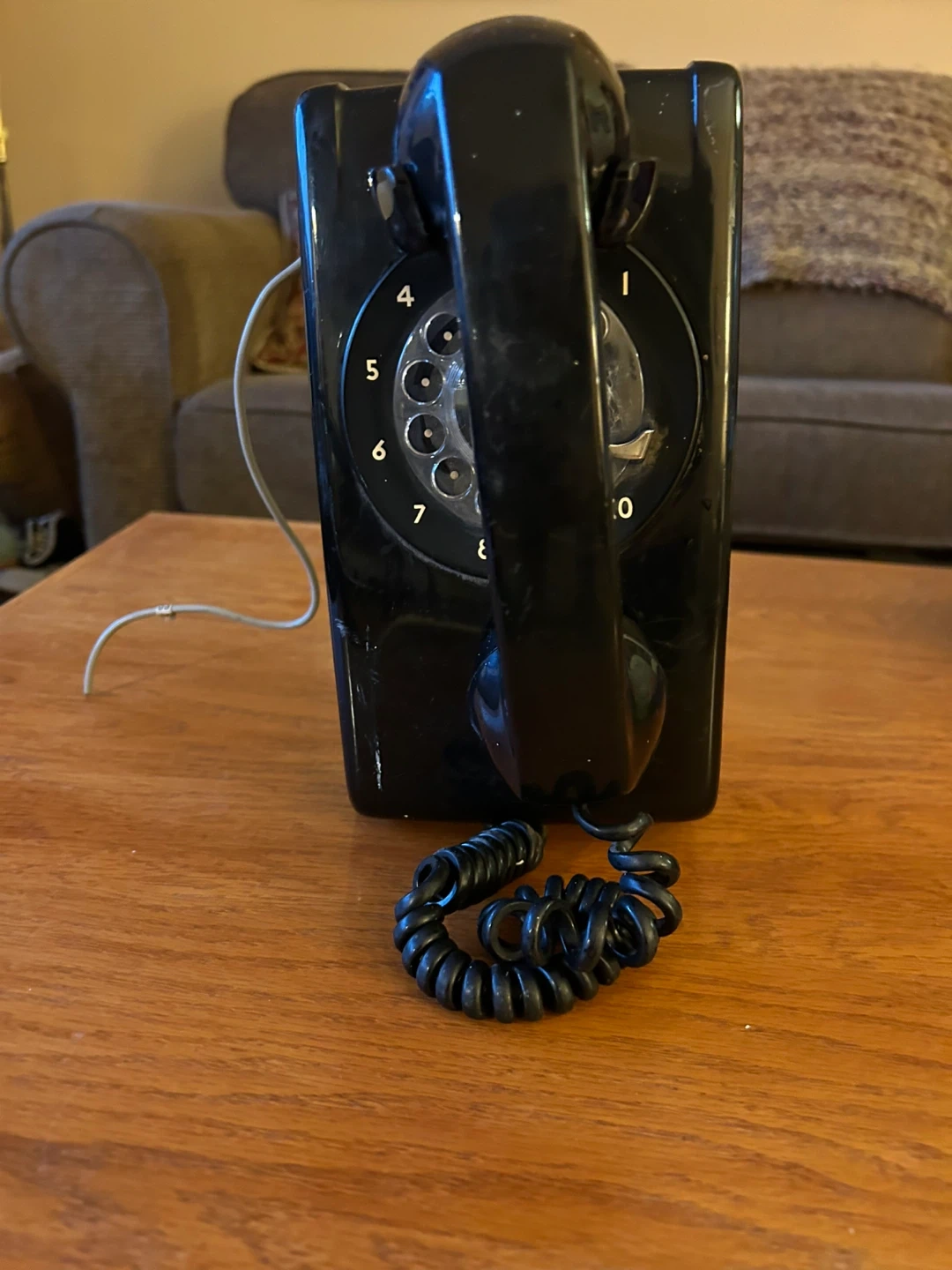 60Selling a vintage black rotary wall phone. It's a classic piece and would be a great addition to a retro-themed space or for anyone who appreciates vintage technology