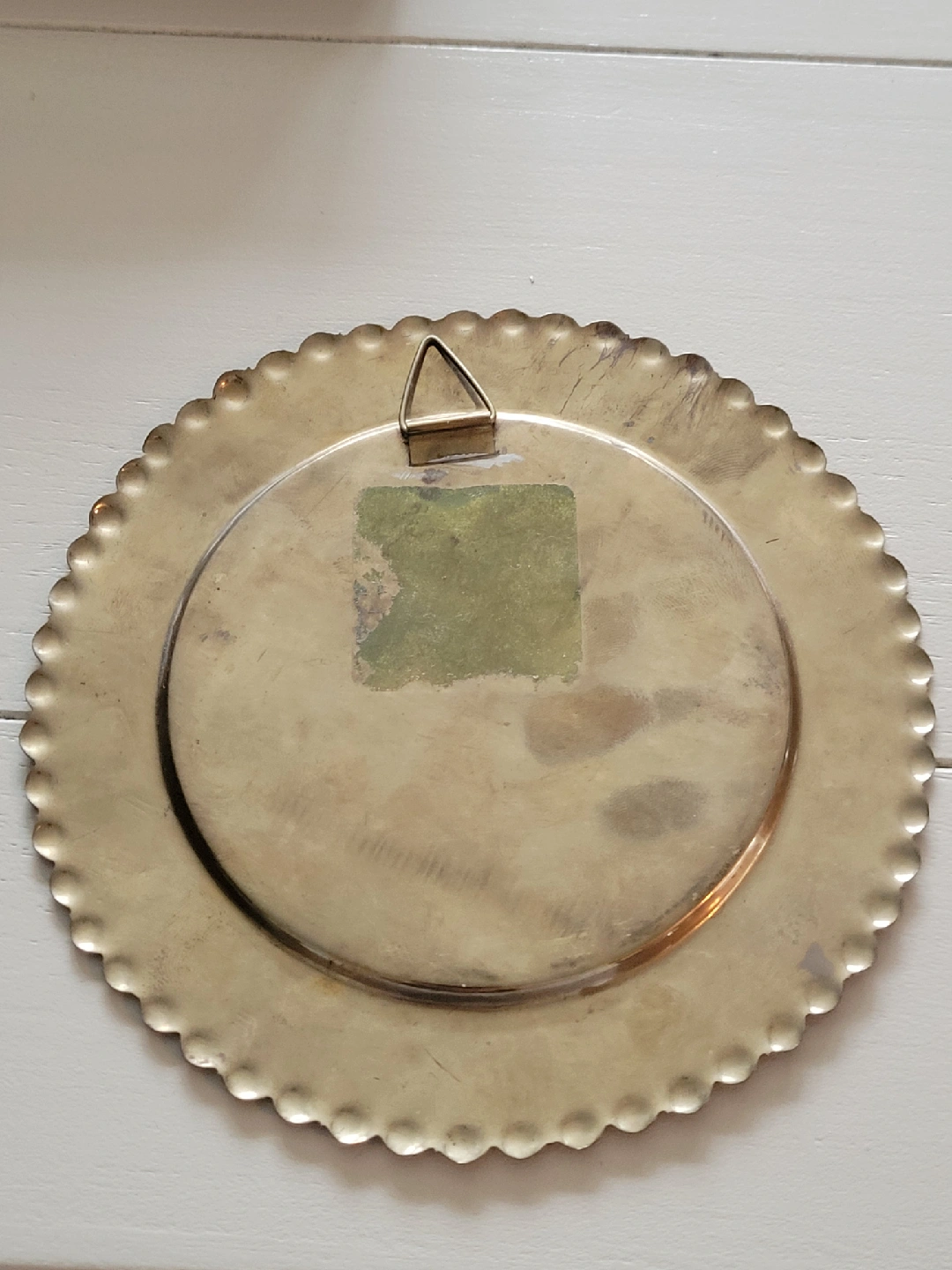 Vintage Engraved Intricate decorative brass plate depicting the Taj Mahal. Engraved. hook on back. 6"dia $25 Fennell and Upper gage Hamilton please click on my many ads for sale