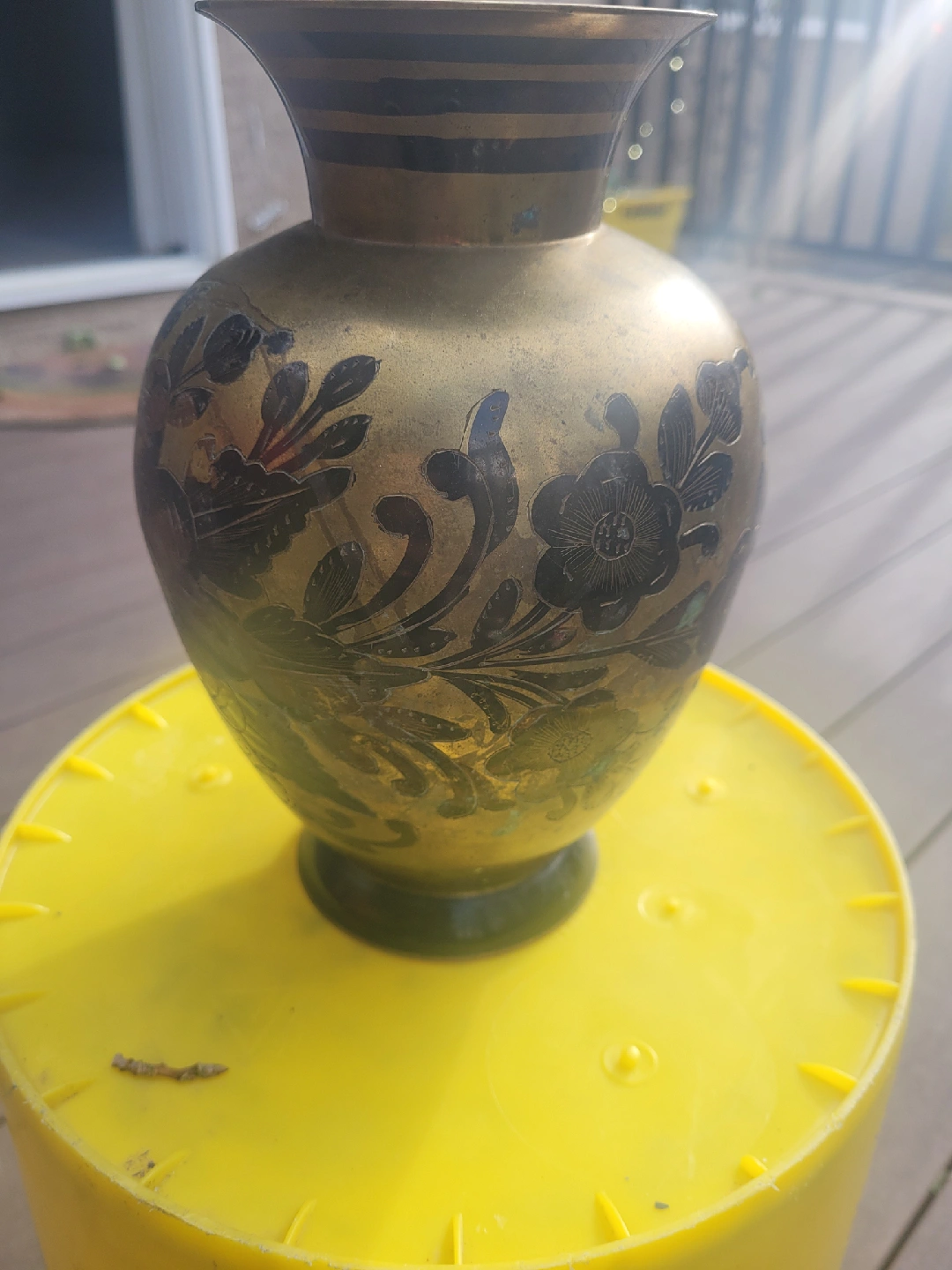 Vintage Brass Vase with Floral Design