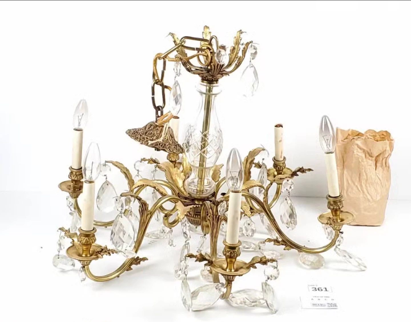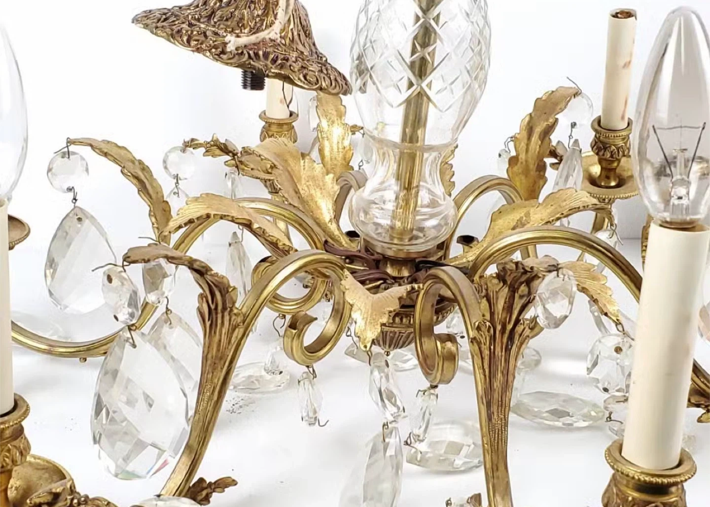 97Bronze chandelier with crystal pendants. Dimensions - 25 D x 17 H.