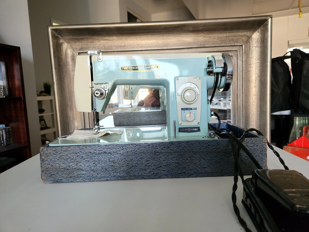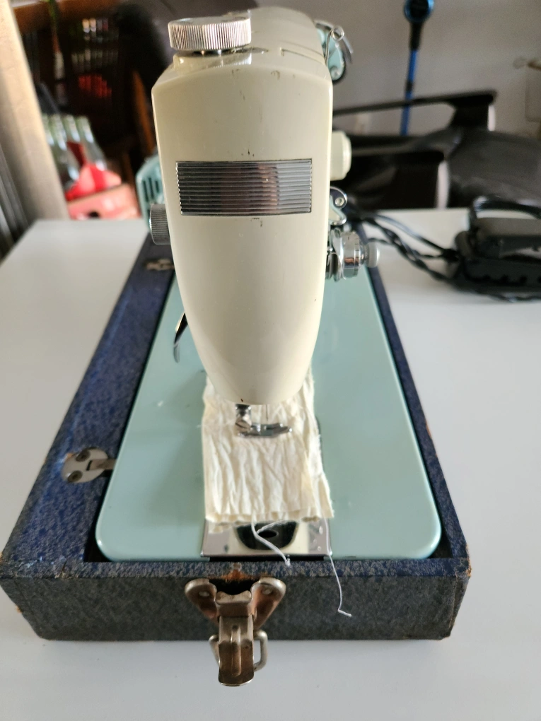 Vintage Brother Deluxe Sewing Machine Foreign Heavy Duty Upholstery Mid-Century The chrome is nice and shiny, à few marks but in almost perfect condition.