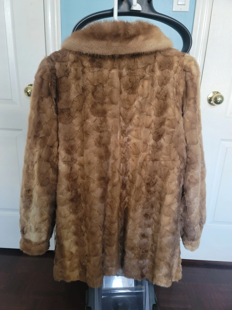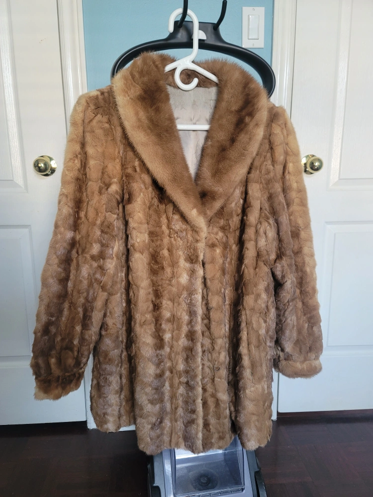 Selling a vintage brown fur coat. It's in good condition and ready to keep you warm this winter! The material is fur and it has a classic design, medium length.