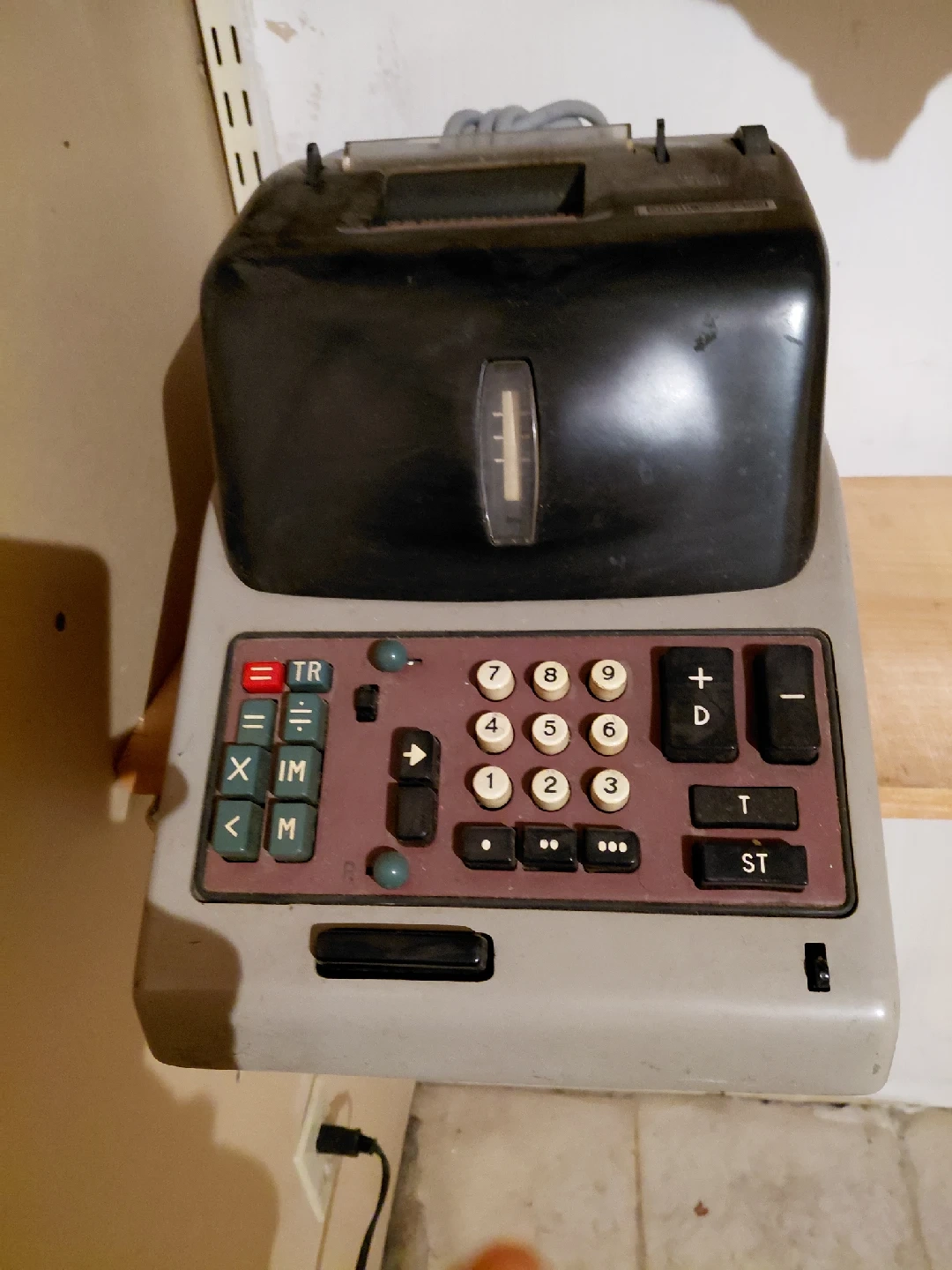 20Selling a vintage calculator. It has buttons for basic math functions, plus some more specialized ones like TR, IM, and M. A cool piece of history!