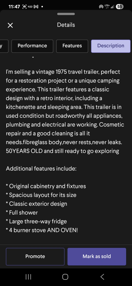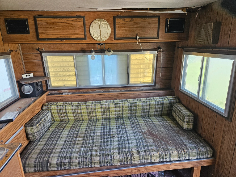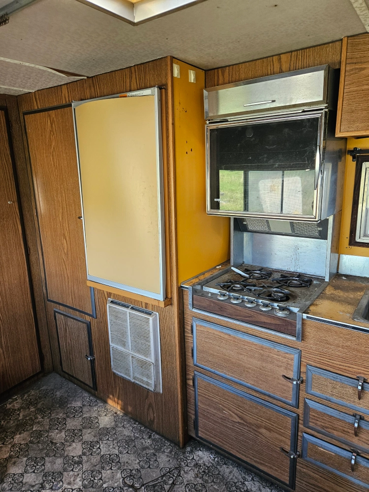 Selling a vintage 1975 camper trailer. It's a project for someone who loves to restore things. The interior has a retro vibe, Perfect for a DIY enthusiast! all plumbing ,electrical and appliances working. new tires and rims. fiberglass body no leaks. needs new toilet. some cosmetic repairs and a good cleaning. price is firm.could possibility deliver