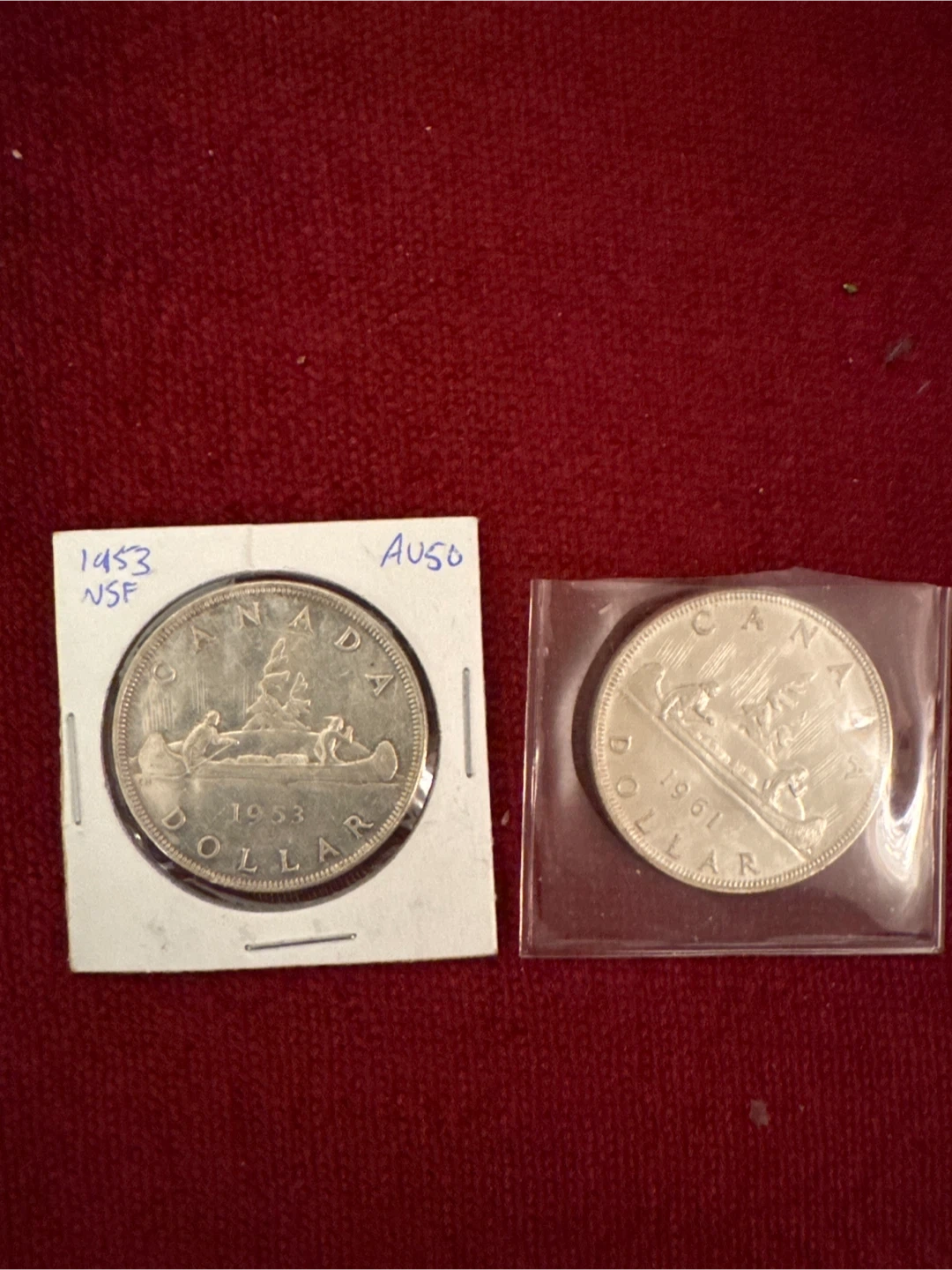 995Selling a couple of vintage Canadian silver coins. One is from 1953 and the other is from 1961. Both feature Queen Elizabeth II.