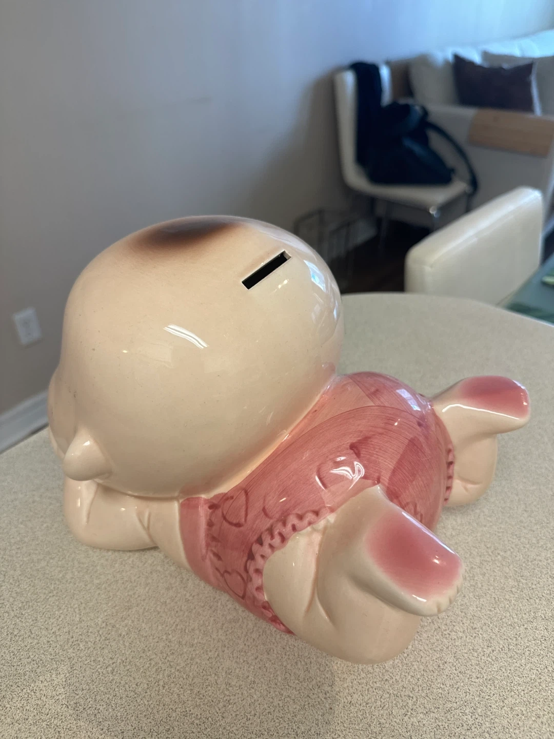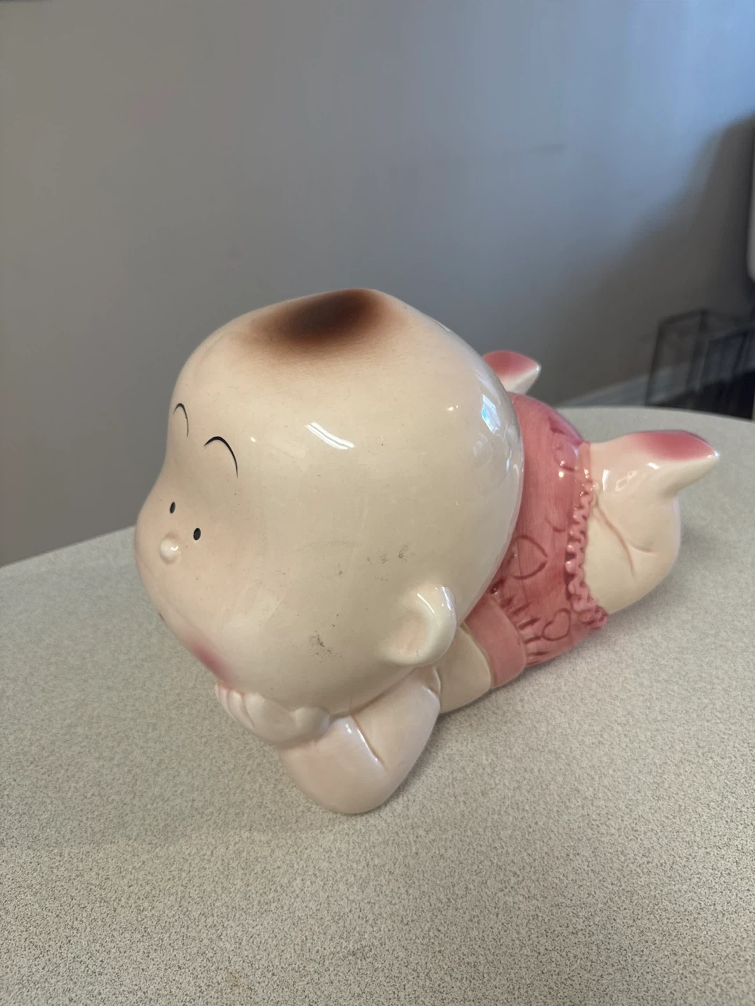 17Selling a vintage ceramic baby piggy bank! It's in good condition and would be a cute addition to any room. It is a light pink colour.