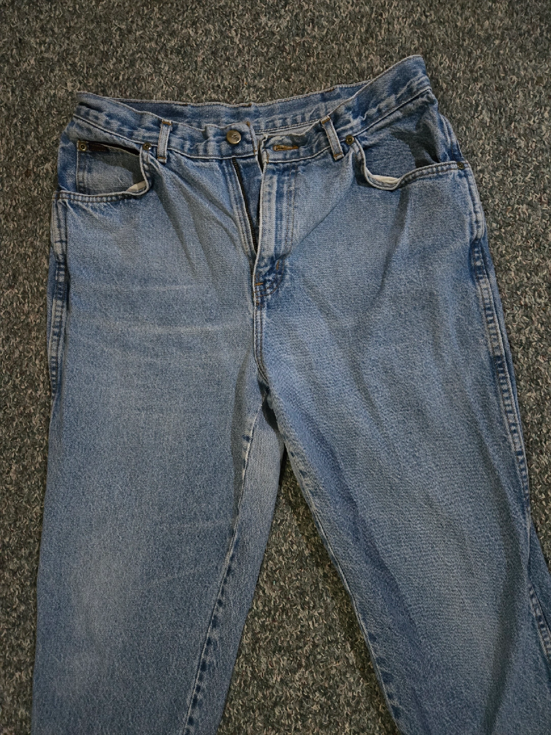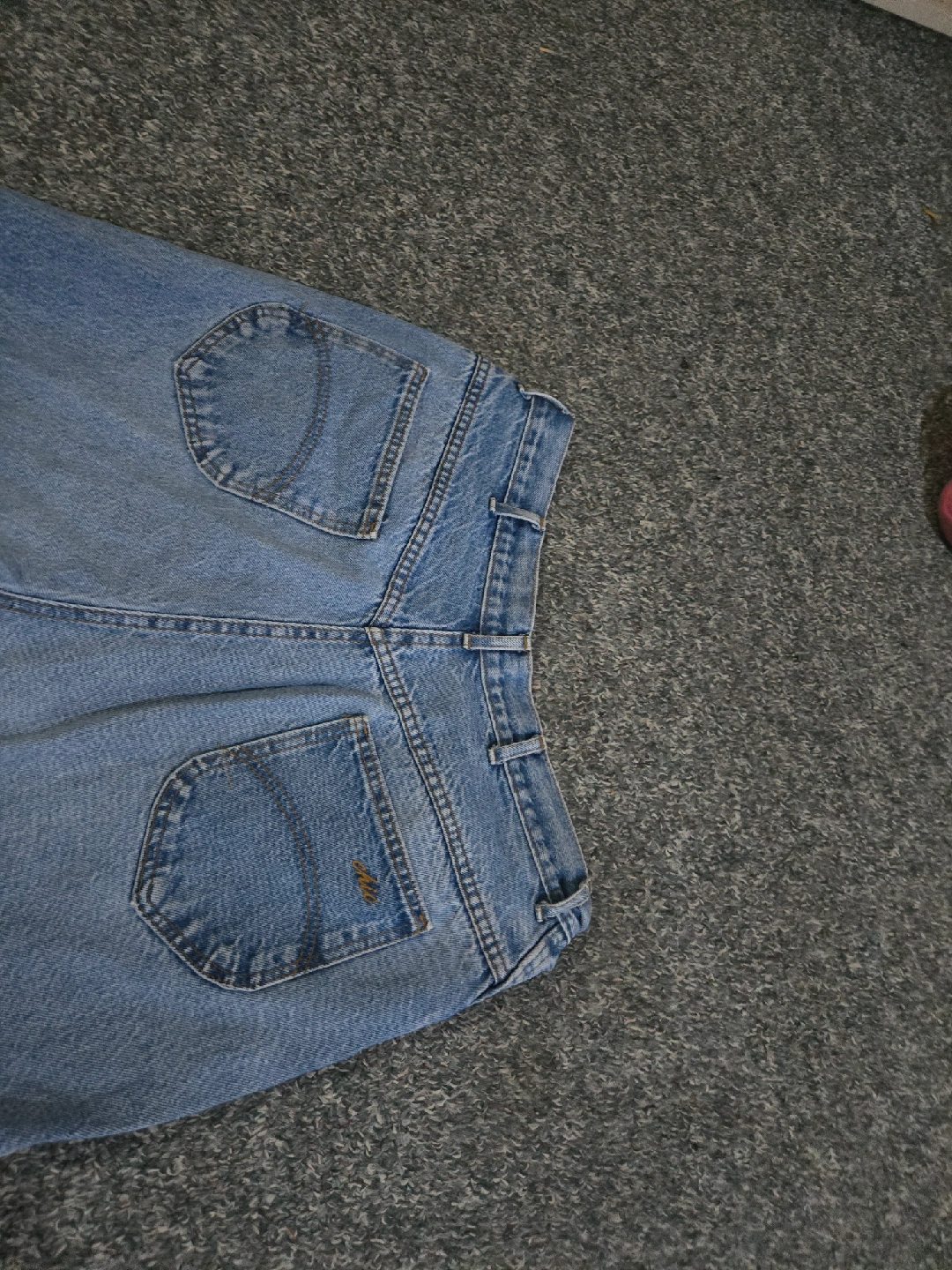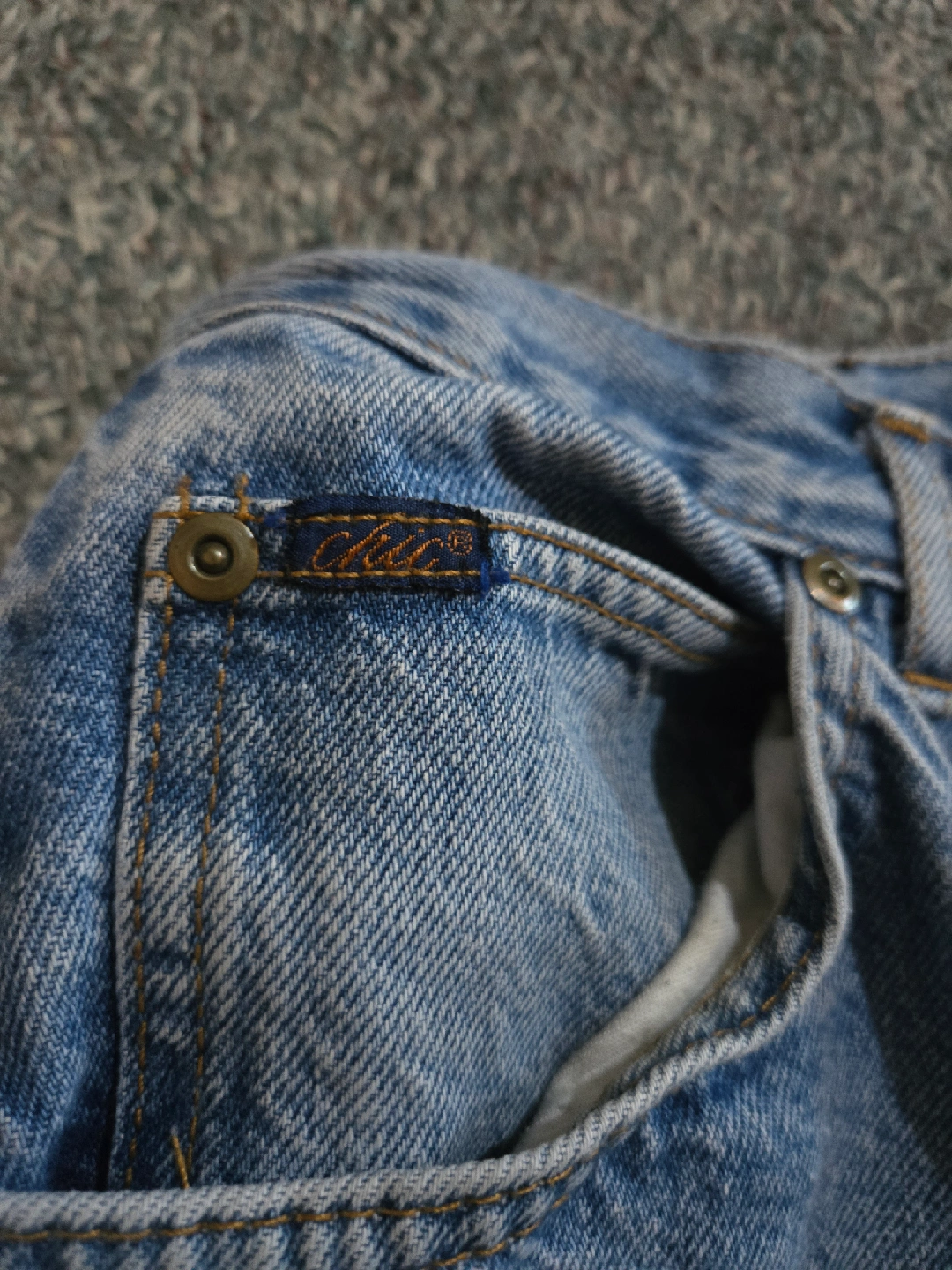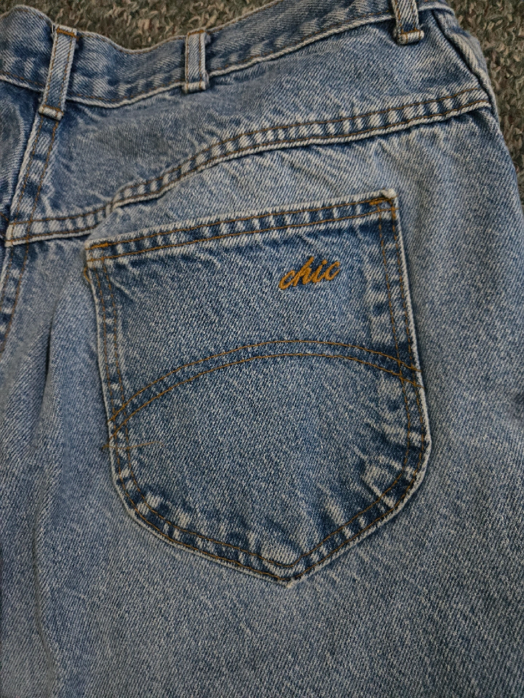 Selling a pair of Chic jeans in a light wash denim. They're in good vintage condition. No tag bit fits about a 30-32 waist.