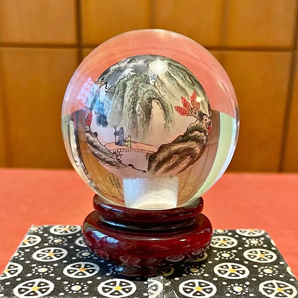 Vintage Chinese Reverse-Painted Art Glass Globe