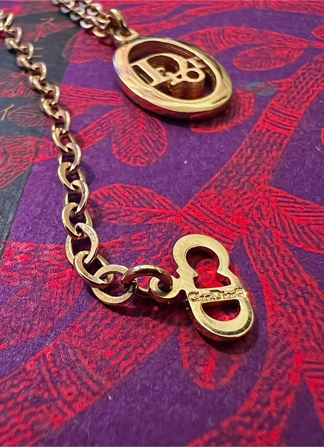 65Selling a beautiful vintage gold Christian Dior necklace! It features the iconic Dior logo on the pendant and the clasp. A classic and elegant piece to add to your collection. Size is 15- 17 inches. Adjustable from the hook. A vintage collection, with no scratches. Store in prefect condition. Please review pictures for any flaws. Purchased from Okinawa, Japan. No packaging