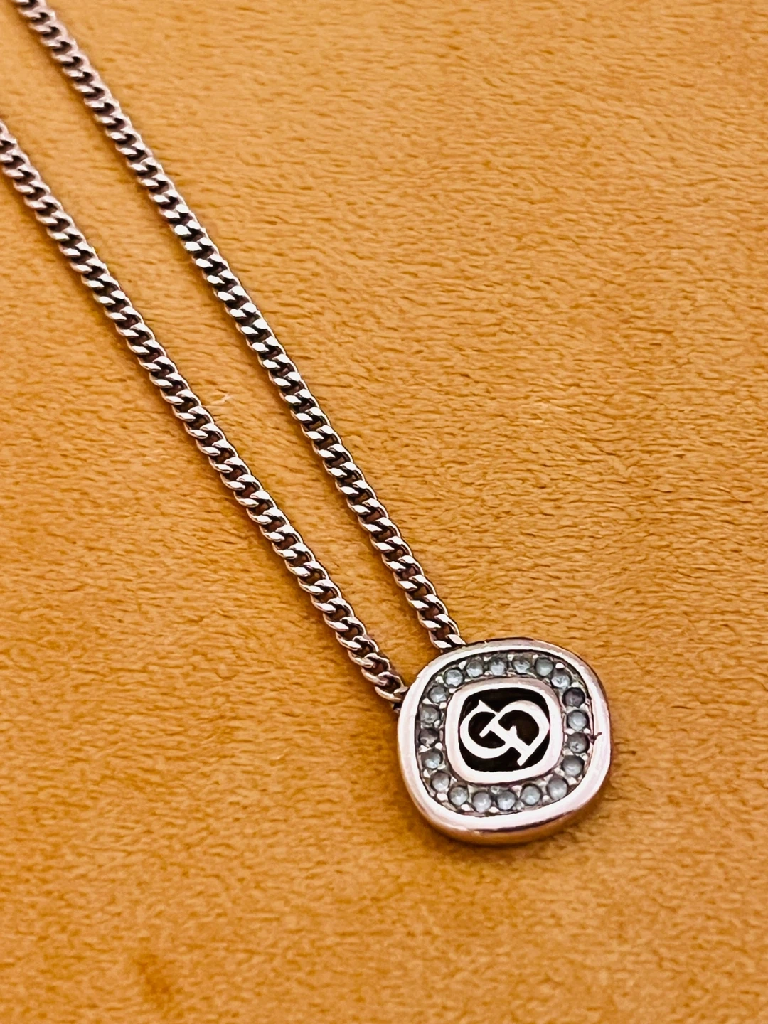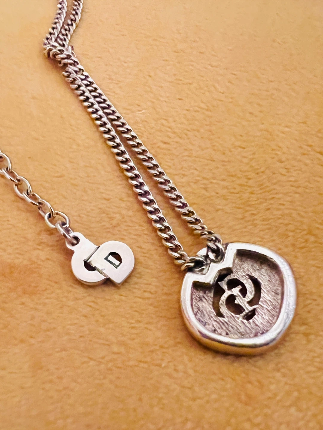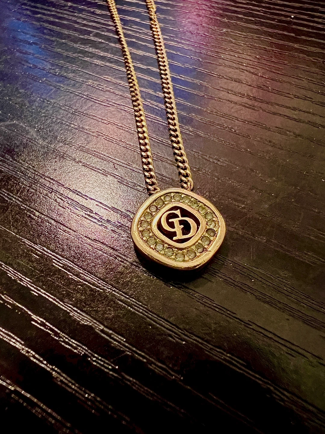 65Selling a beautiful Dior necklace in gold tone (see image with black background). The pendant features the iconic CD logo surrounded by small stones. It's a stylish piece to add to any outfit! Size is 15- 17 inches. Adjustable from the hook. Make in Germany Purchases from a certify vintage shop in Hong Kong, but receipts is gone at $480+ tax Barely any scratches and all the gems are still in place.