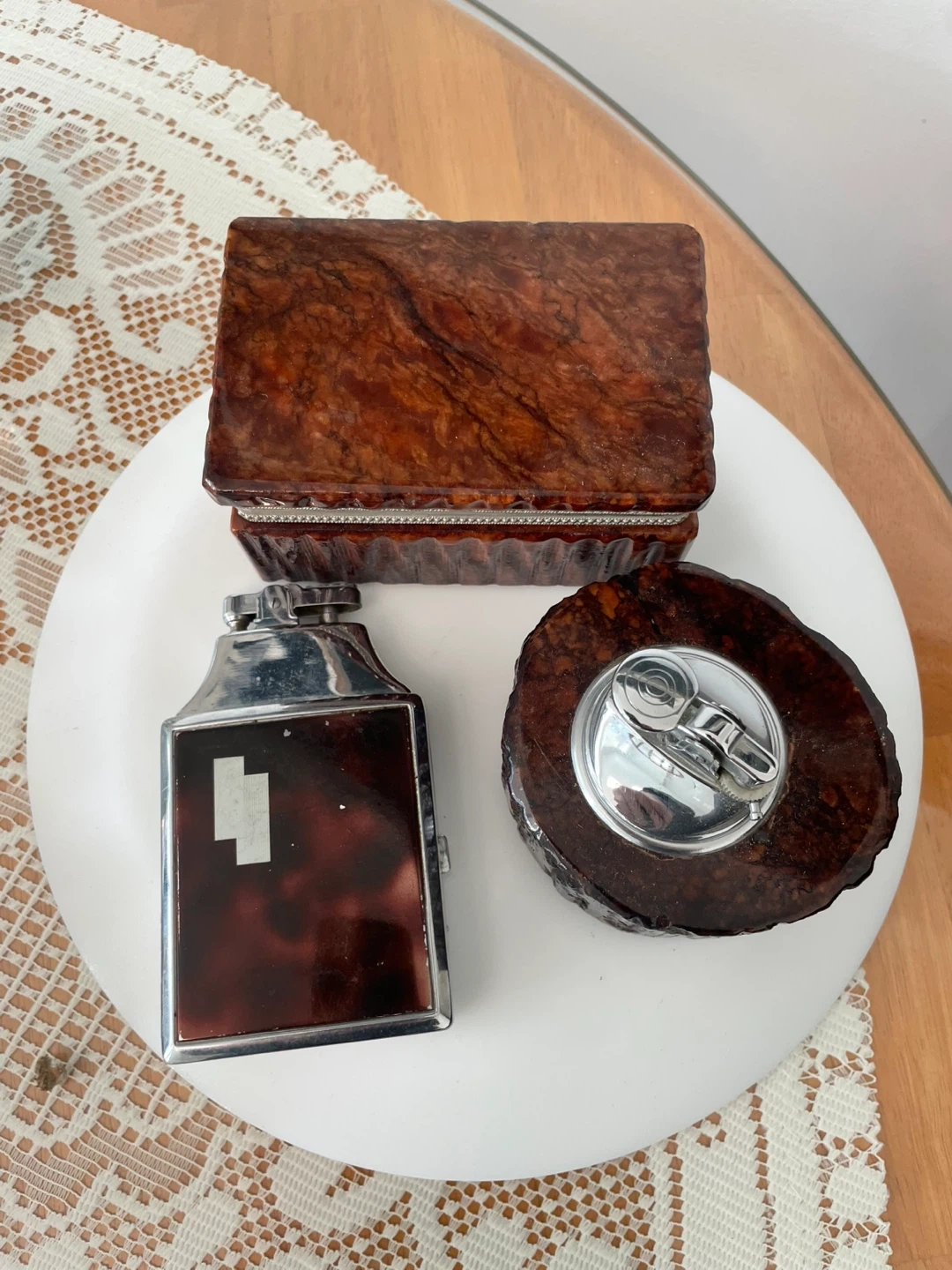60Selling a vintage cigarette case with a built-in lighter, along with a matching wooden box. The set has a unique, retro look and feel, perfect for collectors or anyone who appreciates vintage items starting from 25$