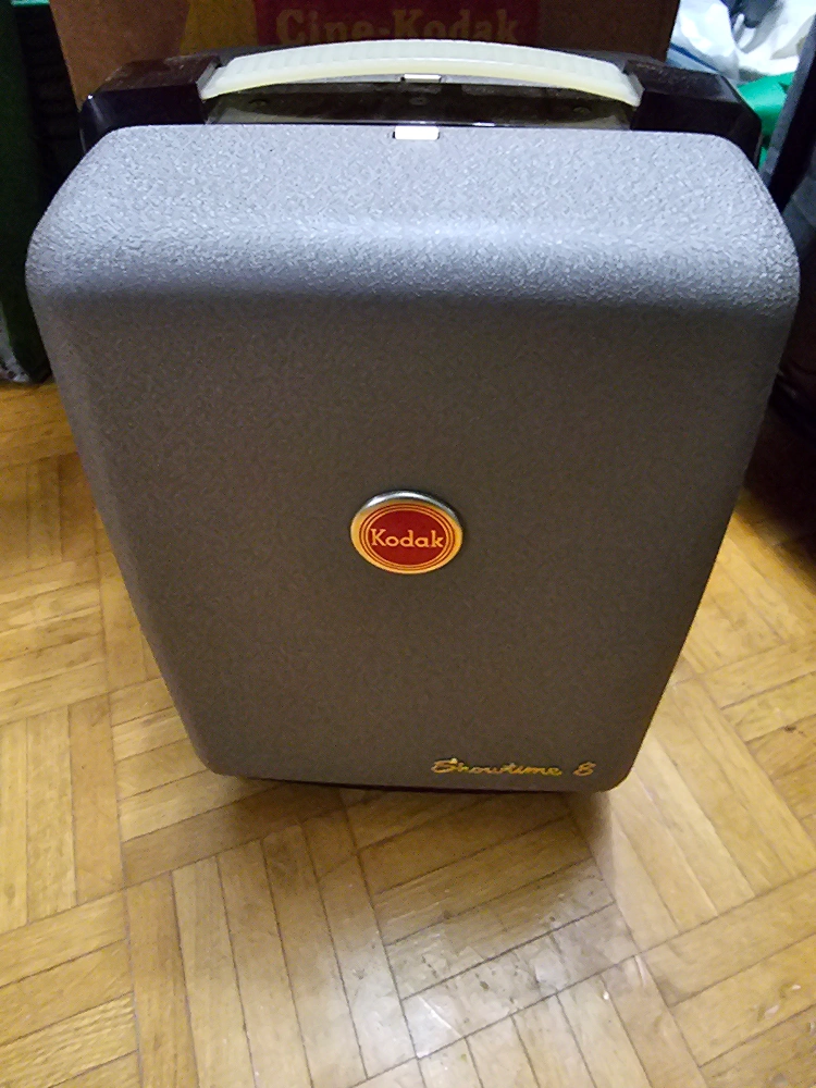 74Selling a vintage Cine-Kodak Showtime 8 Projector, Model B-500. It uses 105-125 Volt AC only. It shows 8 mm movies and is 4 ft wide. The box has some wear, as shown in the pictures, but the projector itself seems to be in good condition