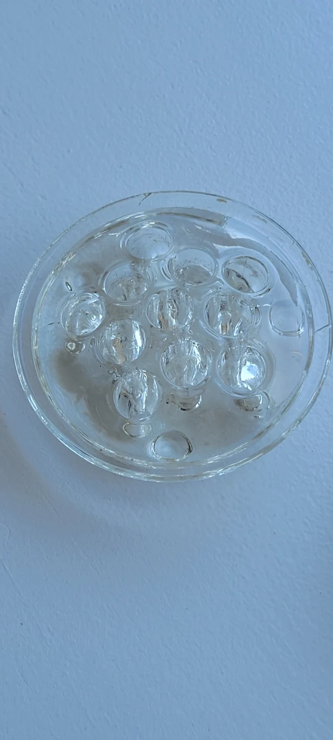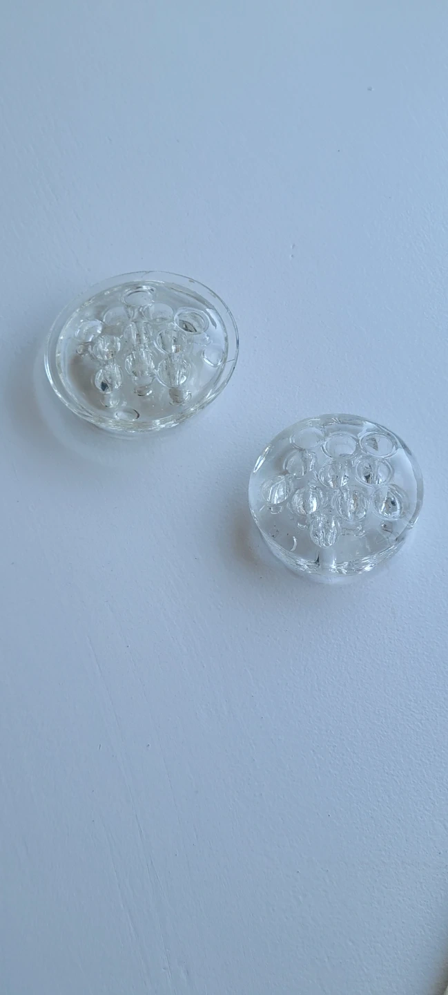 10315 Glass Flower Frog 2-3/4" dia $20 Glass Flower Frog 3.5"dia both $30 Both in great condition Pick up Hamilton Mountain Fennell and Upper Gage