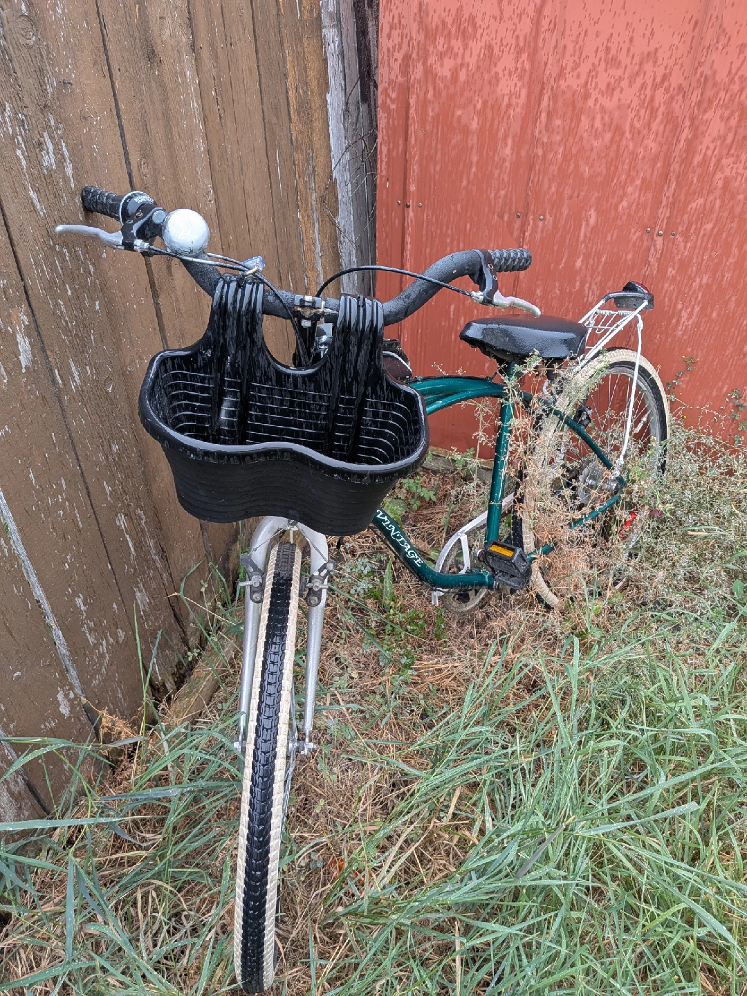 10Selling a vintage cruiser bike! It's green and has a basket on the front. Perfect for leisurely rides around the neighbourhood. It has some wear and tear, as shown in the pictures, but it's still a great bike.