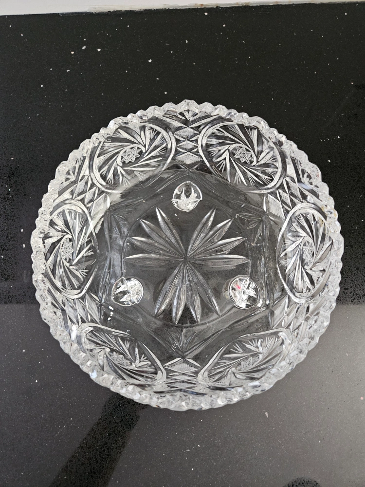 •Used - Like New •Pattern: Monica Pinwheel •Bowl features a Pinwheel star and a diamond pattern with a Sawtooth top edge •4 1/2" H x 8 1/4" diameter •Pick up Brampton - Kennedy & Vodden