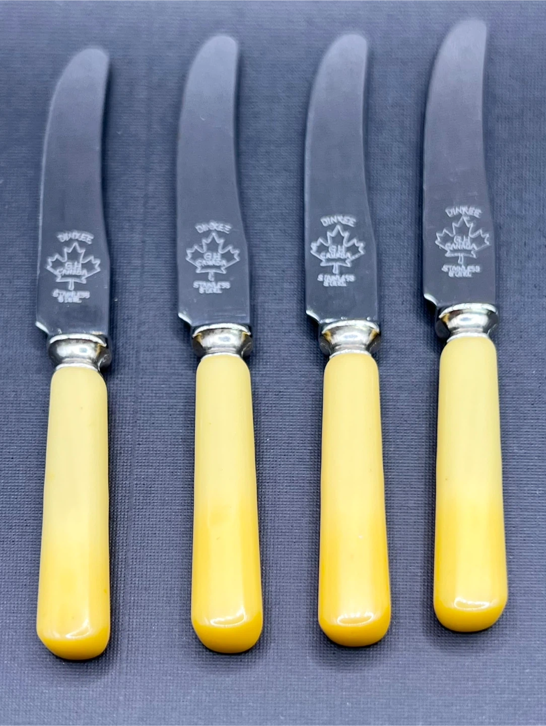 48Here's a set of four vintage DINKEE Canada knives! They're made of stainless steel with Bakelite handles Perfect for charcuterie boards