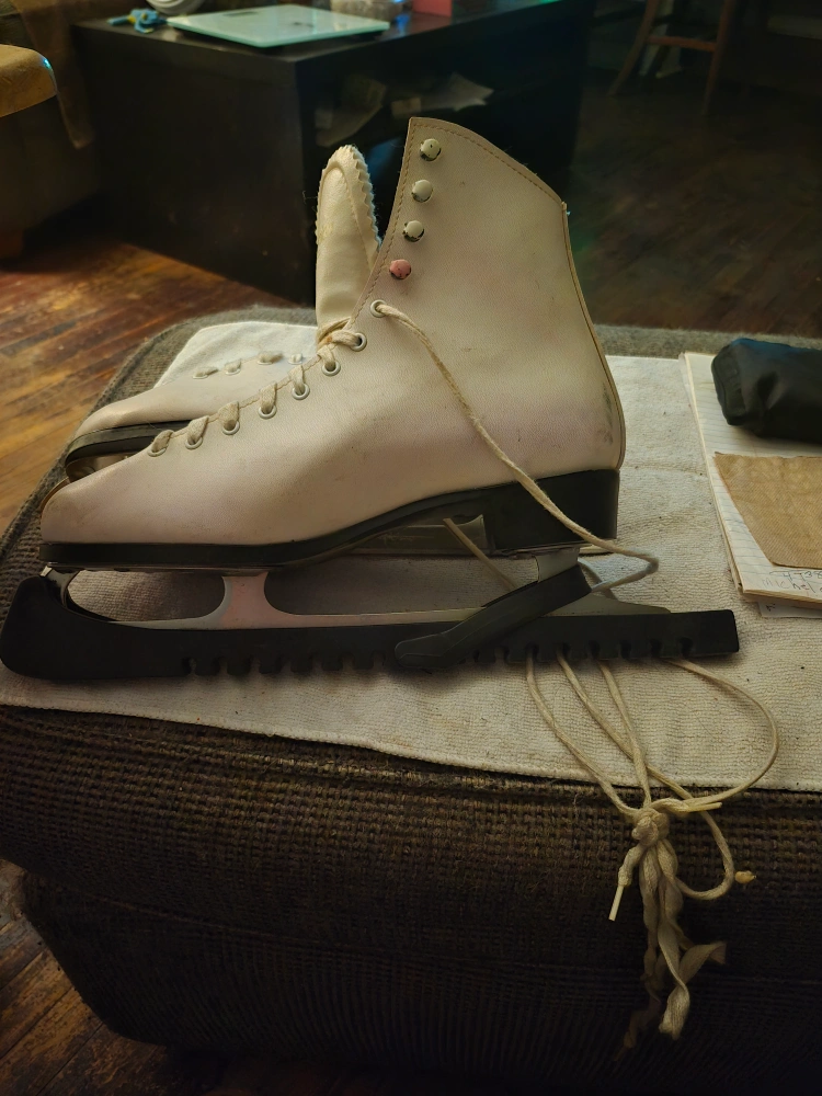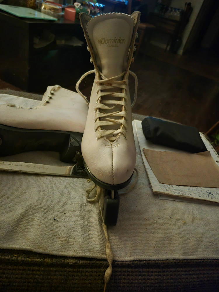 Pair of used white figure skates. GS blades. sold in tact. Good vintage condition. size 10 Canadian Made. open to offers. obo