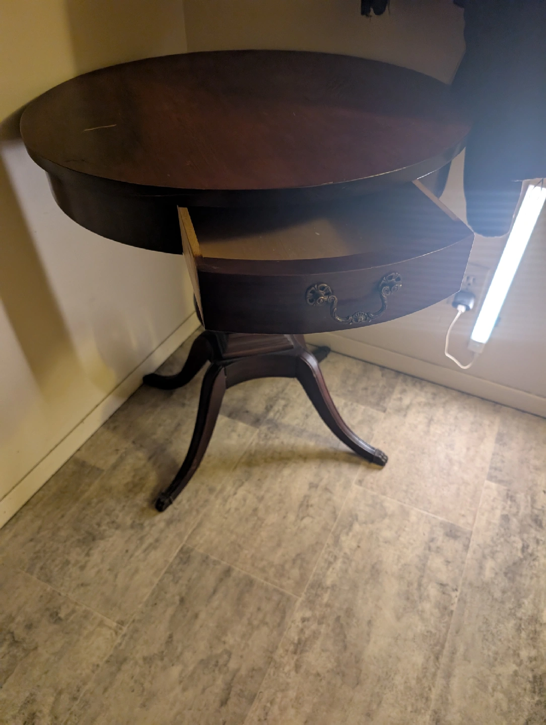 Add a touch of vintage charm to your office with this drum desk with slide out storage drawer and this retro taiyo desk clock and calendar set! Both are in good condition and ready to keep you on schedule with a dash of old-school style. You can expect normal wear from an item of this age. It is both stylish and functional. If you're wondering if it’s still available, yes it is! Can be sold together or sepret 220$ for the pair or obo Excepting offers pick up is In forest lawn