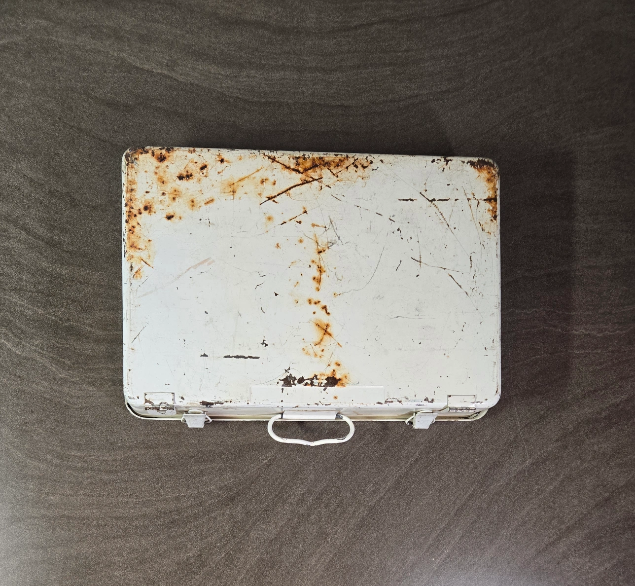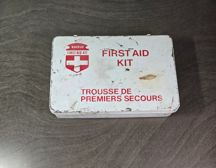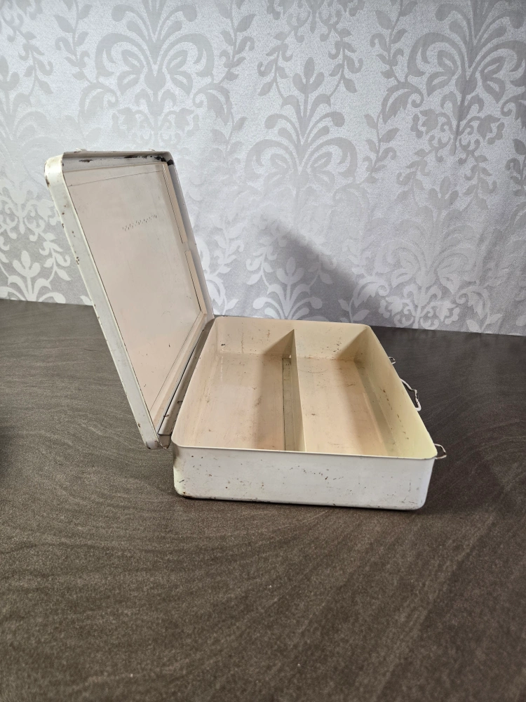 Selling a vintage first aid kit. 14"×9"×2.5". It has a metal case and is labeled in both English and French. The case shows some wear and tear, as you can see in the photos still a cool piece. Hinges work as well as closing clips. Is able to be hung on a wall. Cross-posted. 💥If you have a moment please have a look at my other items for sale.